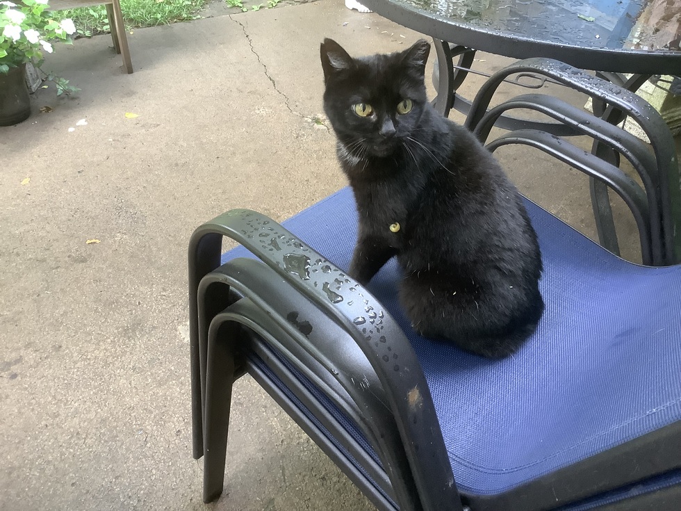 Mama is a feral cat I’ve taken care of since 2013. She has come to love pets and brushes and sleeping in my lap. In this picture, it had just rained and Mama has picked up a hitchhiker snail.