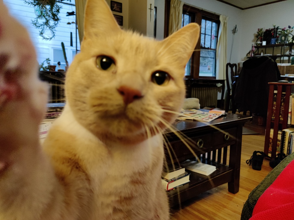 I adopted the Gooseberry when he was 3. It took quite a while before his personality would show, he was so scared. Now he shows it all the time. When there food involved, he's a bear. He want's his food and everyone else food. If I would let him, he would sit about 6 inches from the other cats and gives them the stare trying to get them to abandon their dishes. If I'm not looking, it would work. He's especially partial to potato chips. He doesn't actually eat them, just gets mesmerized by the potato chip bag and makes a beeline to it.