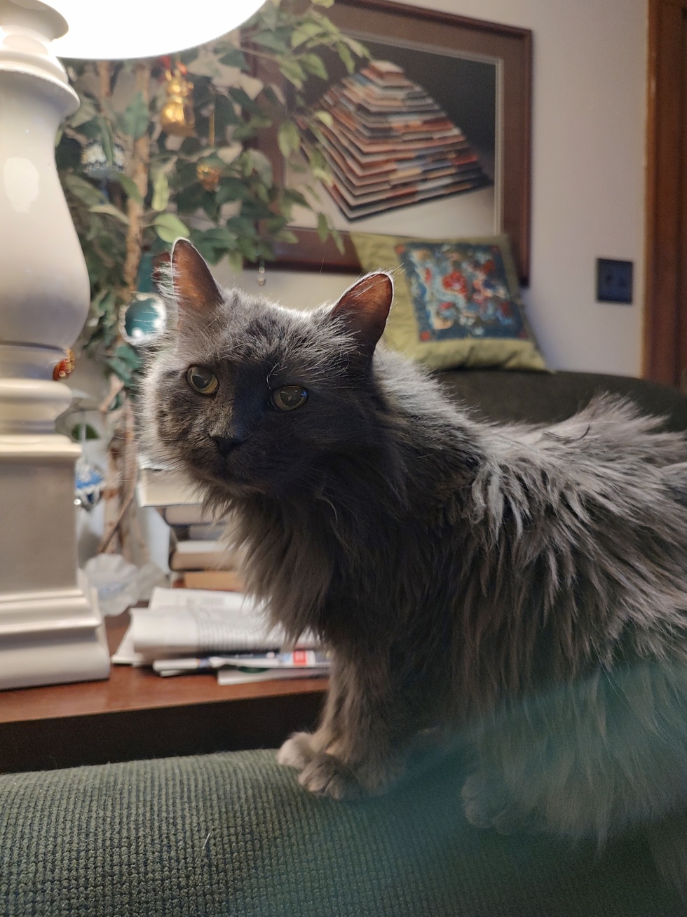 When I went to Pet Pride last summer, right away Carmen stood out to me. I took pictures of her to send to friends. As people came to the shelter, she was outside greeting everyone. Then they came inside and adopted another cat. It got to the point where I found excuses to go to the shelter just so I could see her. Then in December, I broke, I brought her home. She was ready to roam the house from the get go. It wasn't long before she scaled two baby gates that were trying to keep her contained and away from my other cats.