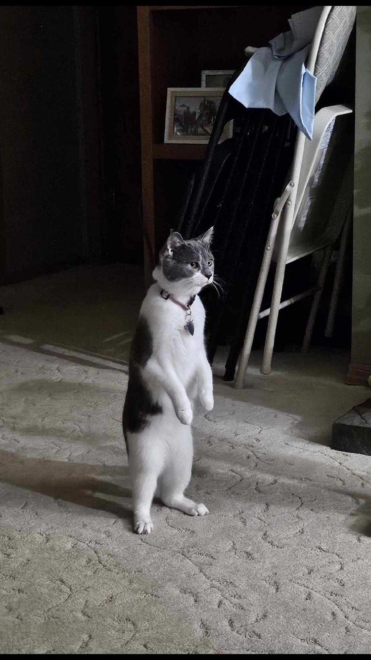 Nora was trying to look thru the window opening into the kitchen when I left the living room.