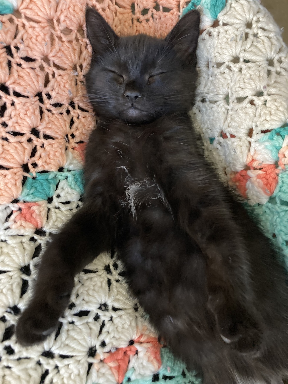 We added Lulu to our family when we lost our oldest cat Peanut. She has added so much joy to our household. She enjoys playing with her two cat sisters, catching bugs and looking for chipmunks and birds from the sunroom windows, but most of all napping with mommy!