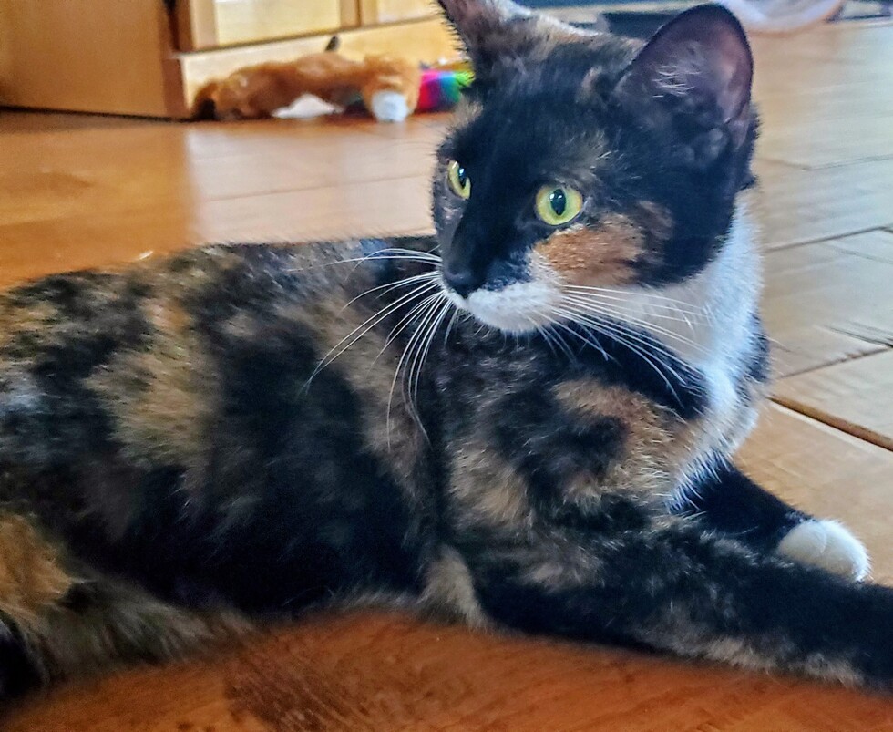 The instant I saw this little girl at Pet Pride I was taken aback by how much she looks like her predecessor, Nutsy, who I lost last December. Sunny Corleone is a cuddly, vocal, sociable cat. She gets bonus points for letting me trim her nails with no problem. She loves chasing lasers and playing catch with spring toys. Yes, she retrieves. Sunny Corleone is a great companion.