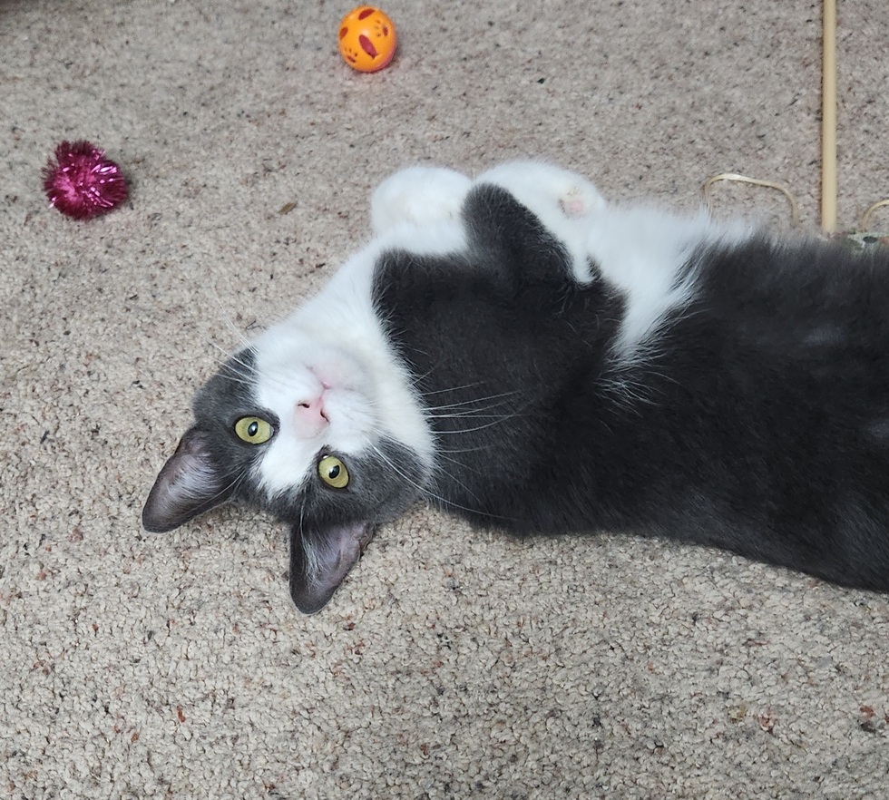 It took a long time for Rose to trust anyone and at the shelter she was often known to "slap" people as they walked by. I have always believed that there are no "bad cats" and that given enough time, patience, and love, any cat can be a good cat. Rose is just one example of that. Once I earned her trust (there may have been some bribery involved...Rose loves churu and chicken) we bonded and neither of us have ever looked back! She is currently enjoying a life of cozy cat towers, soft blankets and cat TV, which are just a few of her favorite things. She also loves to play and really enjoys being petted!