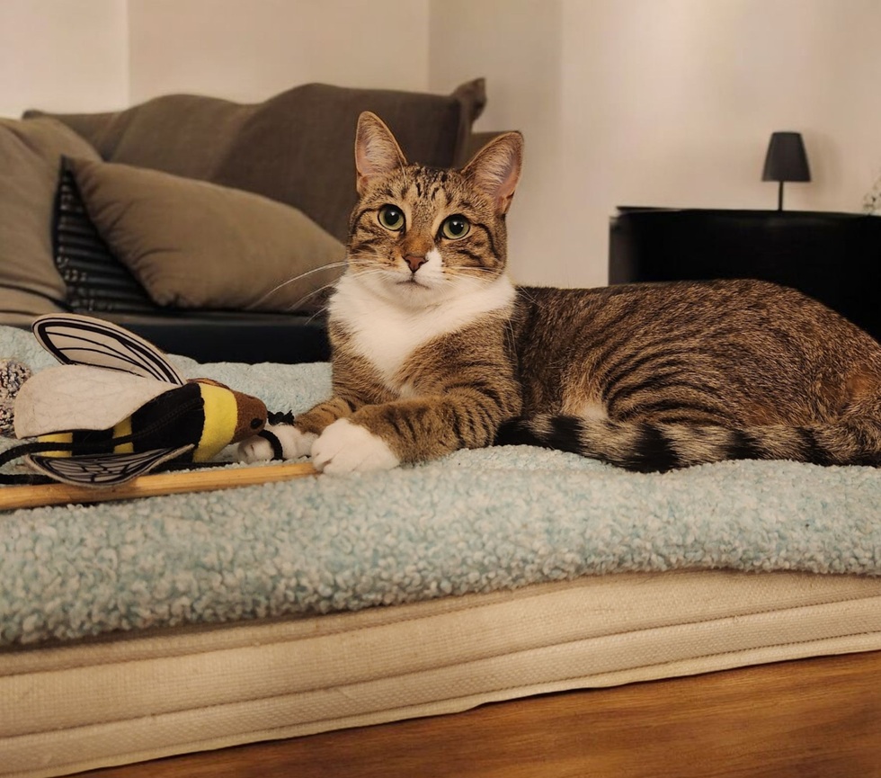 When Celeste was a kitten this bee toy was bigger than she was! It's still her favorite!