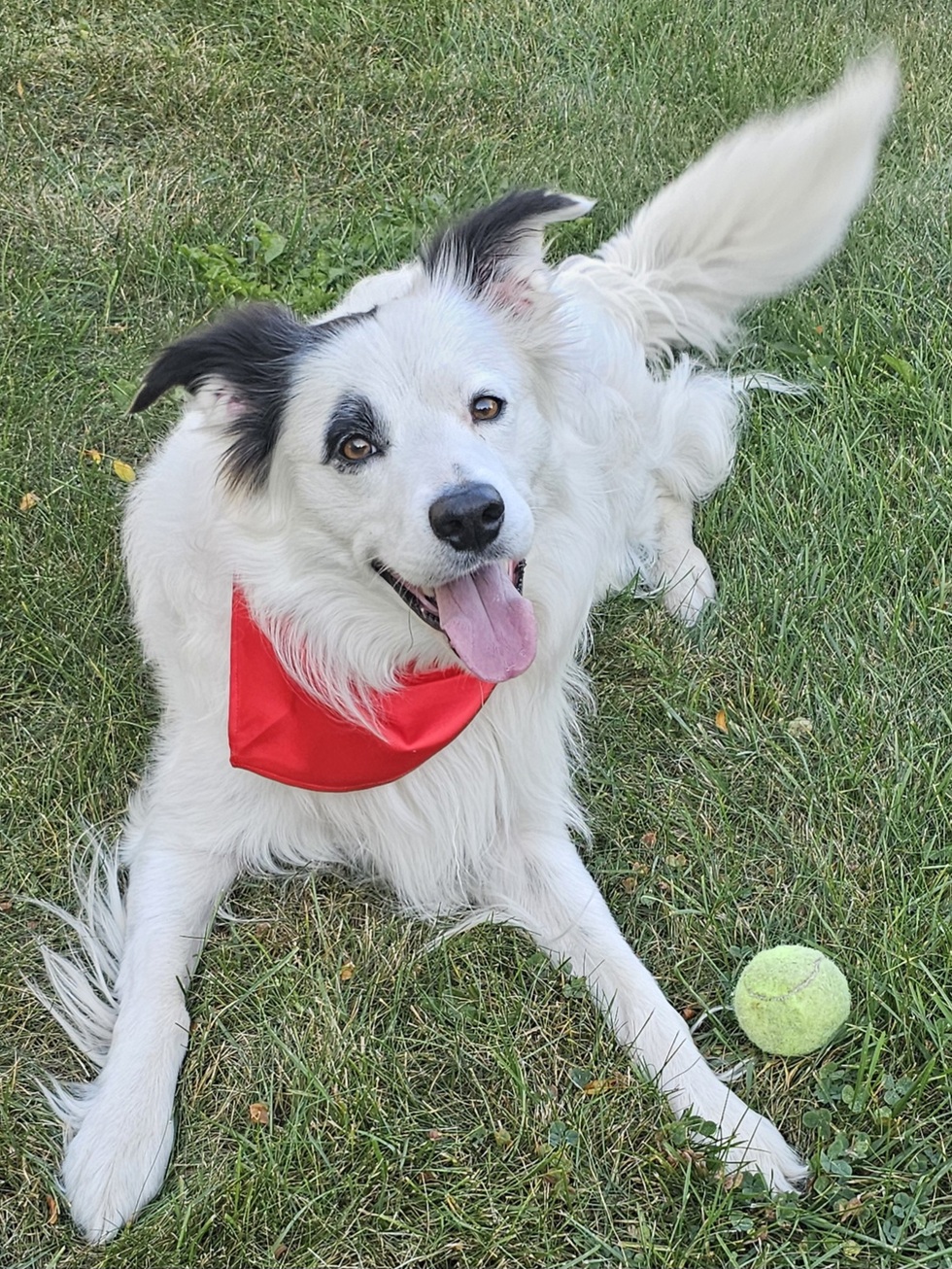 I'm Aengus, a dapper lad that is a fun loving, good natured, happy Border collie. I have a lot of energy, so I like to play, play, play. It's the simple things that keep me happy like playing ball, barking at squirrels, napping with my bunny brother (yes, a real bunny) and going for truck rides, but doing anything with my humans is the best! Mom says I am a very loving and loyal companion.