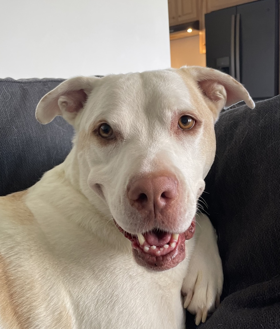 Oakley is a rescue, 10 yrs old — Great Pyrenees/Lab/Pittie mix. Her favorite thing is cheese, sun-bathing, and simply being outdoors.