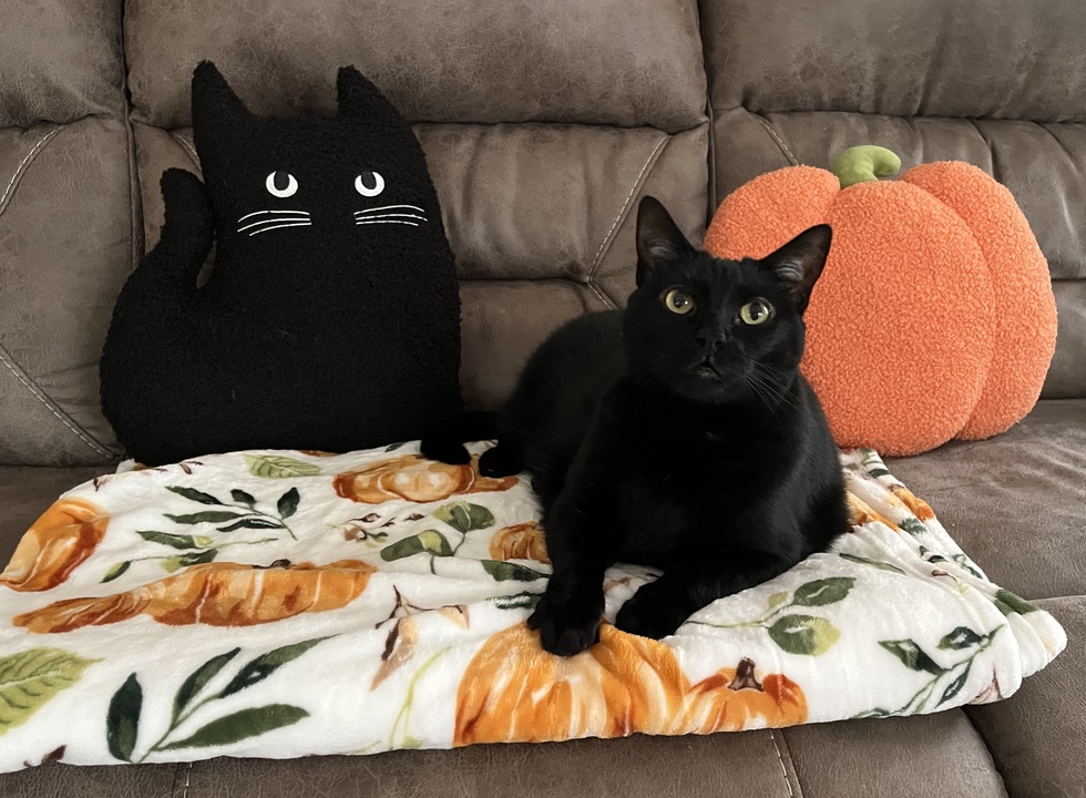 Beautiful house panther, Sophie Joy, is ready for pumpkins and spooky season.