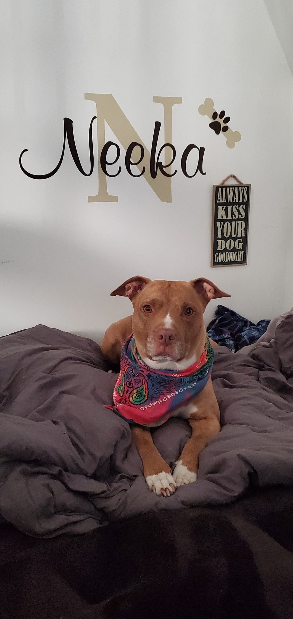 Neeka is 6 yrs old , she is energetic and funny. She loves to run around and play with her toys . She is the biggest love bug and loves to snuggle and give kisses to eveyone!!! She is beyond smart and has quite the personality. She loves her stuffed animals and treats them all like her pups. This princess must have her bandana on at all times (and has them for every occassion). She has trained us very well lol. There isnt anything she wont do for a cookie either, she will show you every trick she knows!!She is always up for an adventure or car ride! She loves "posing " for pictures too!!! She works her way into the heart of anyone she meets. Neeka says thanks for your votes!!!!