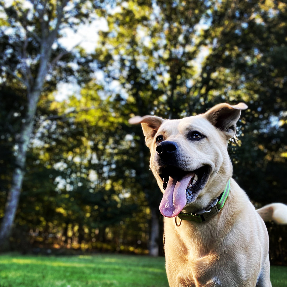 This is Dabber. We adopted him 4 years ago from East Greenwich Animal Protection League. He’s obsessed with his frisbee! In fact, he likes to jump really high to catch it. Our favorite thing about Dabber is his smile. He loves to show his off his tongue. He’s our handsome boy and we hope you think so too!!