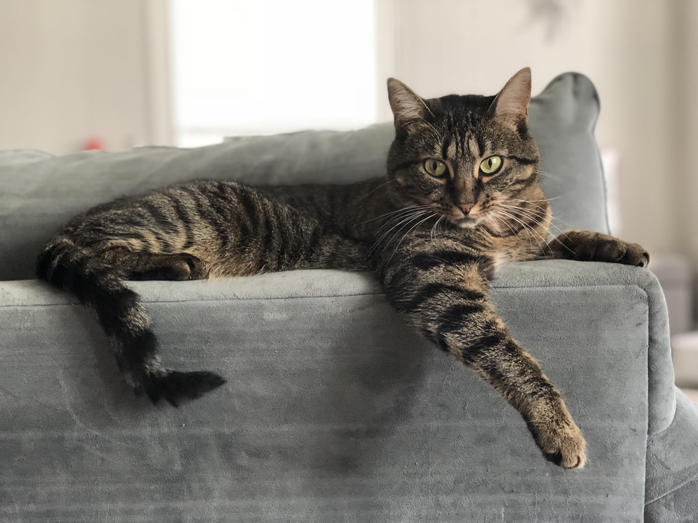 Prim is a loving and cuddly cat. She is going to be four years old in March. Her favorite things to do are sit on your lap and nap, watch birds, squirrels, and cars outside, and watch the neighborhood kids get on and off the bus. When she is being pet she is a purr factory and doesn’t want anyone to stop petting her.