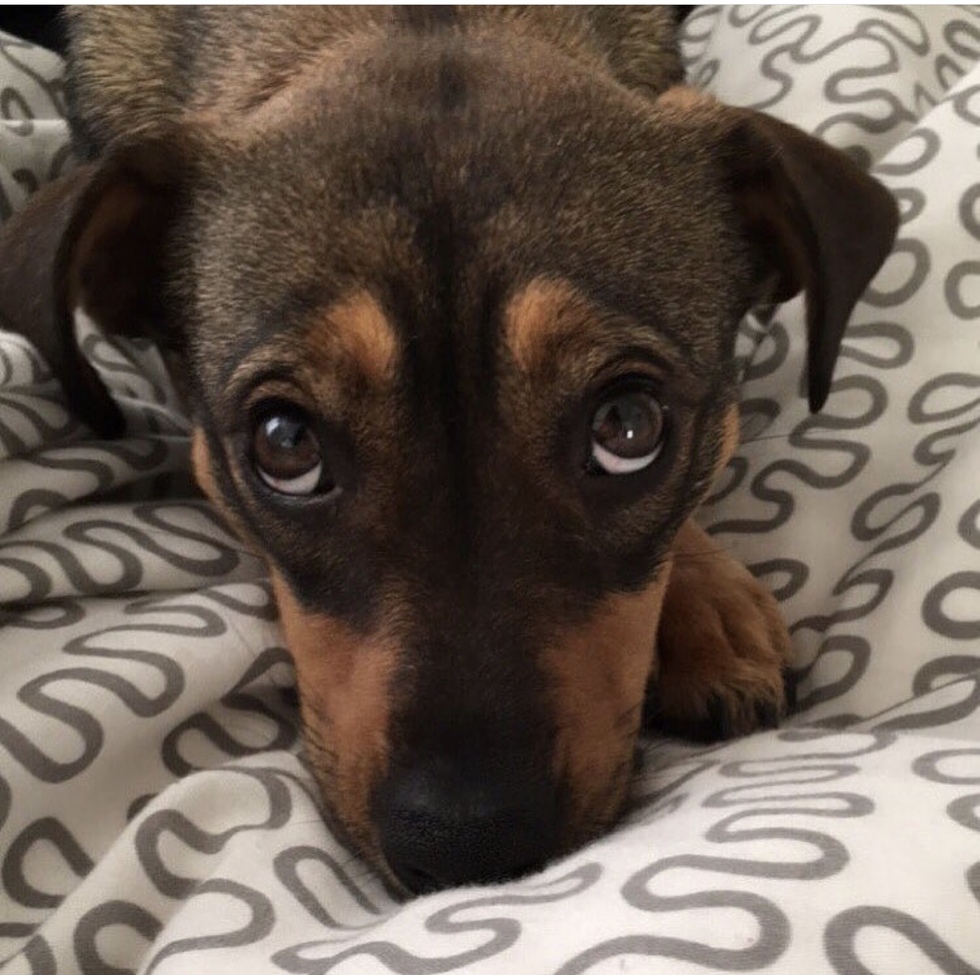 We adopted Dolly from the Potter League after she was rescued alongside her 7 puppies from the streets of San Antonio. Dolly’s tricks include “kiss kiss” and “spoon”