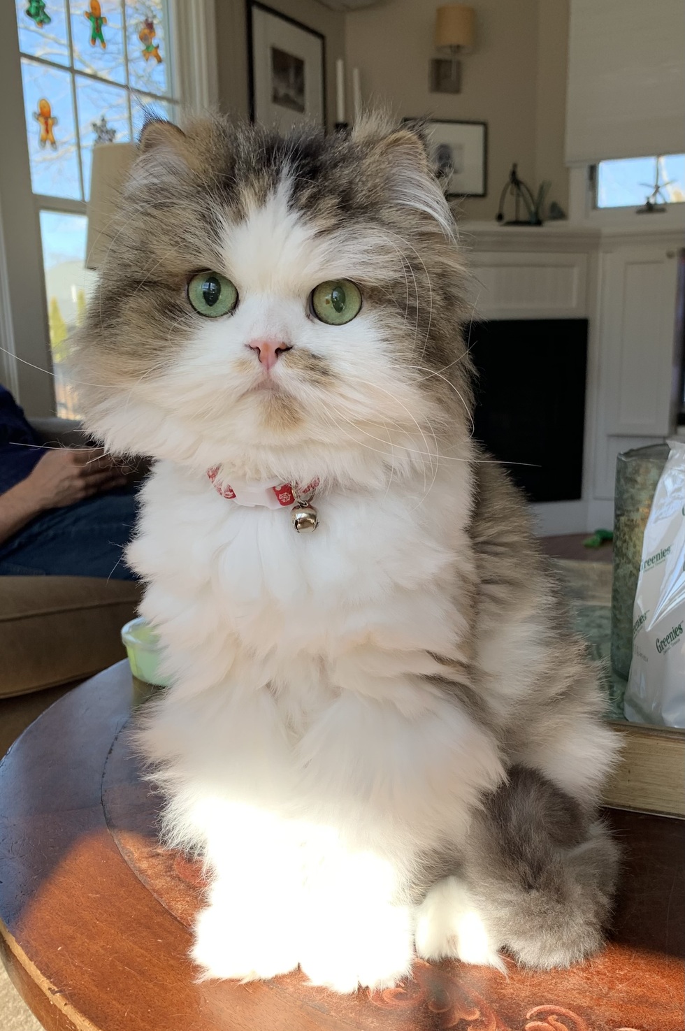 Takis is an indoor Persian kitty who enjoys outdoor stroller rides. He really has only one true love named Oli. Everyone else he tolerates - you may even get to pet him if you provide treats. His other companion is a King Charles Spaniel named Rocky whom he likes to “sneak attack” on occasion. Takis is very dramatic and will stomp away in anger (soap opera style) when he doesn’t get his way. He is a good old fashioned diva.