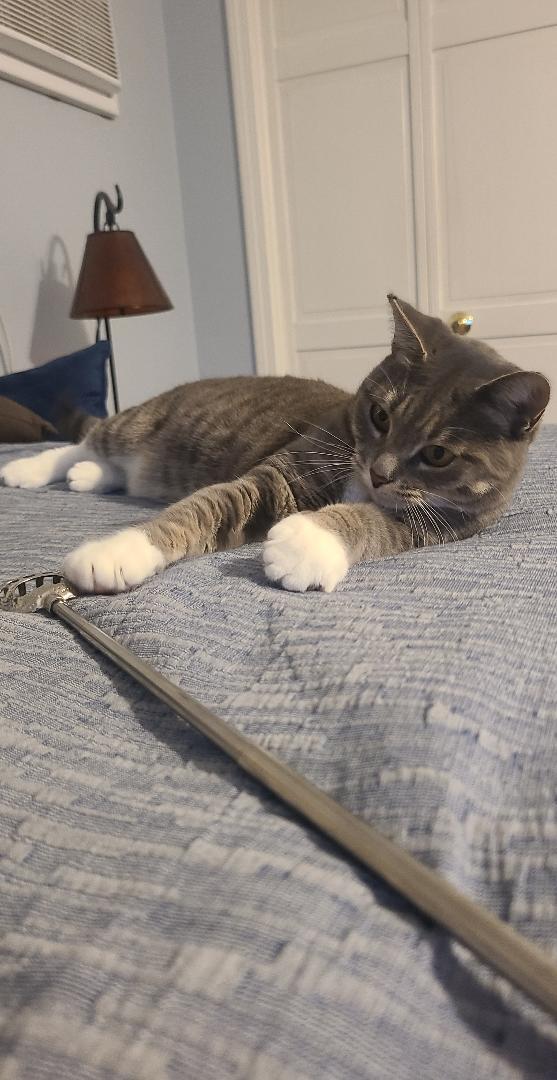 Last spring, Tessie showed up at my doorstep as a stray. At first, she was very scared, but we worked to build her trust. We didn't realize she was pregnant, but later found she had kittens in our boat. At this point, she was very loveable and trusted us completely. Potters was great as they got all of the kittens adopted. Tessie just stole our heart; we fell in love with her and decided to keep her. She is so sweet and a cuddle bug for sure. She is best friends with my black cat Daisy who is also in the contest. They play chase all day and takes naps together when they finally wear each other out. She is a little doll for sure! Oh, and she has a hearty appetite!!