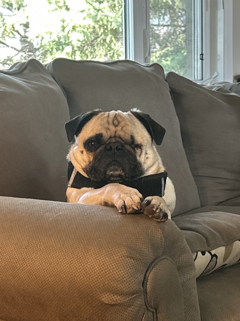 Giff was adopted from Pug Nation in January 2024 and now lives in Calgary, Canada. Although he’s not a fan of the cold, he’s the most lovable little guy! He adores snuggling under the covers with his humans, loves zoomies, and is surprisingly athletic. Even though he lost an eye in LA, he’s still the most handsome pug around — wouldn’t you agree?