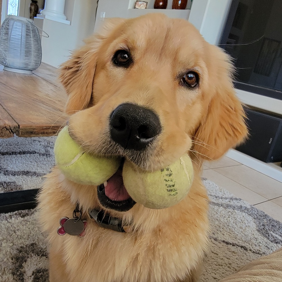 At home, she answers to “P” — though she will also respond to “Where’s your ball?” and “Who’s the cutest golden ever?” (She assumes the answer is obvious.)