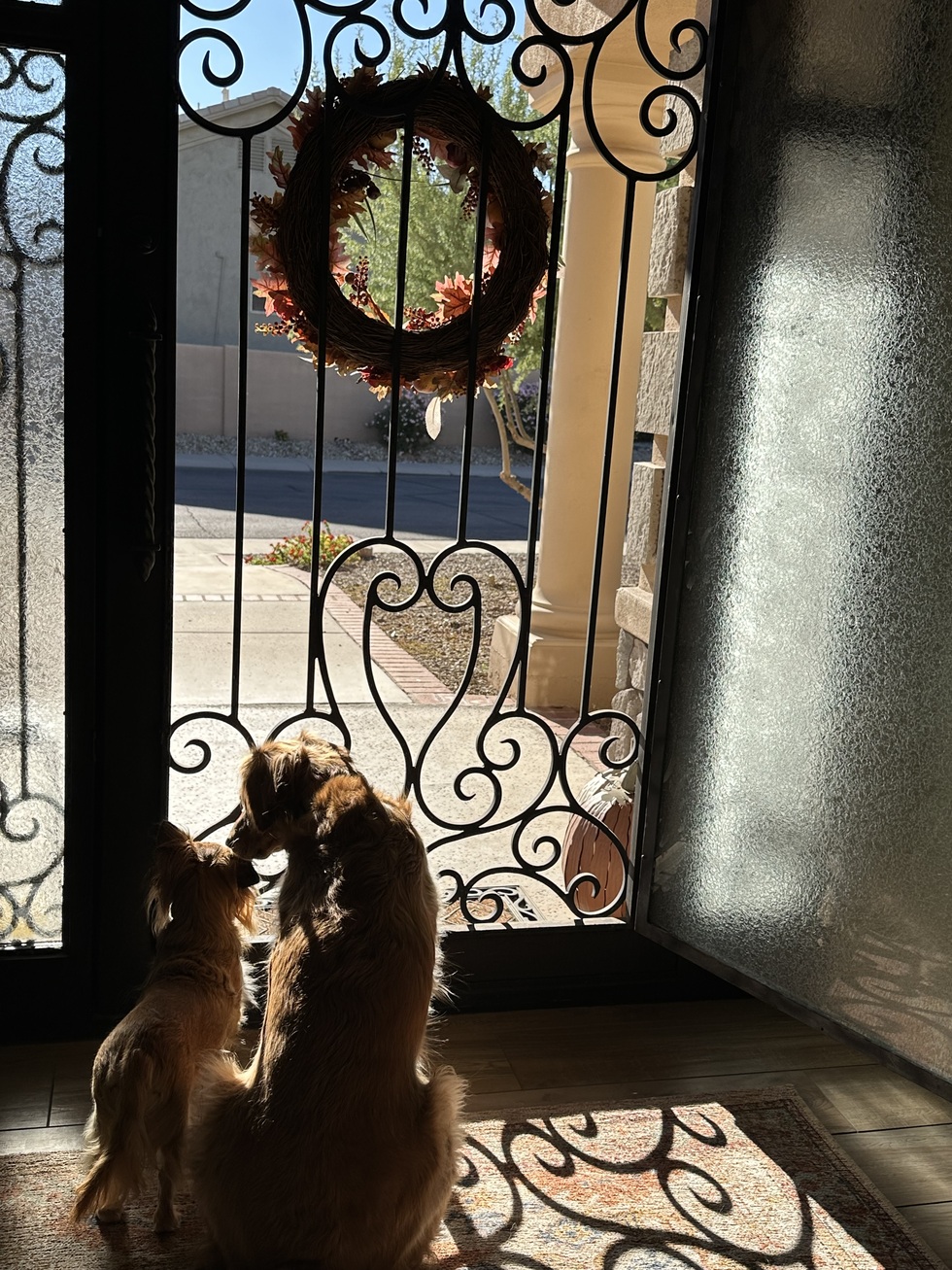 We rescued Goldie just after Thanksgiving 2023. She is the sweetest girl. Every day is a new adventure trying to find where she’s moved our shoes (though she never chews them!💕). Here she was keeping an eye on the neighborhood with her “big” sister Maya. We lost Maya last November. When the vet came to the house that last day, Goldie ran in to the bed Maya was resting on and wrapped herself around Maya and put her seem around her to make sure her beloved sister knew she was safe and loved.