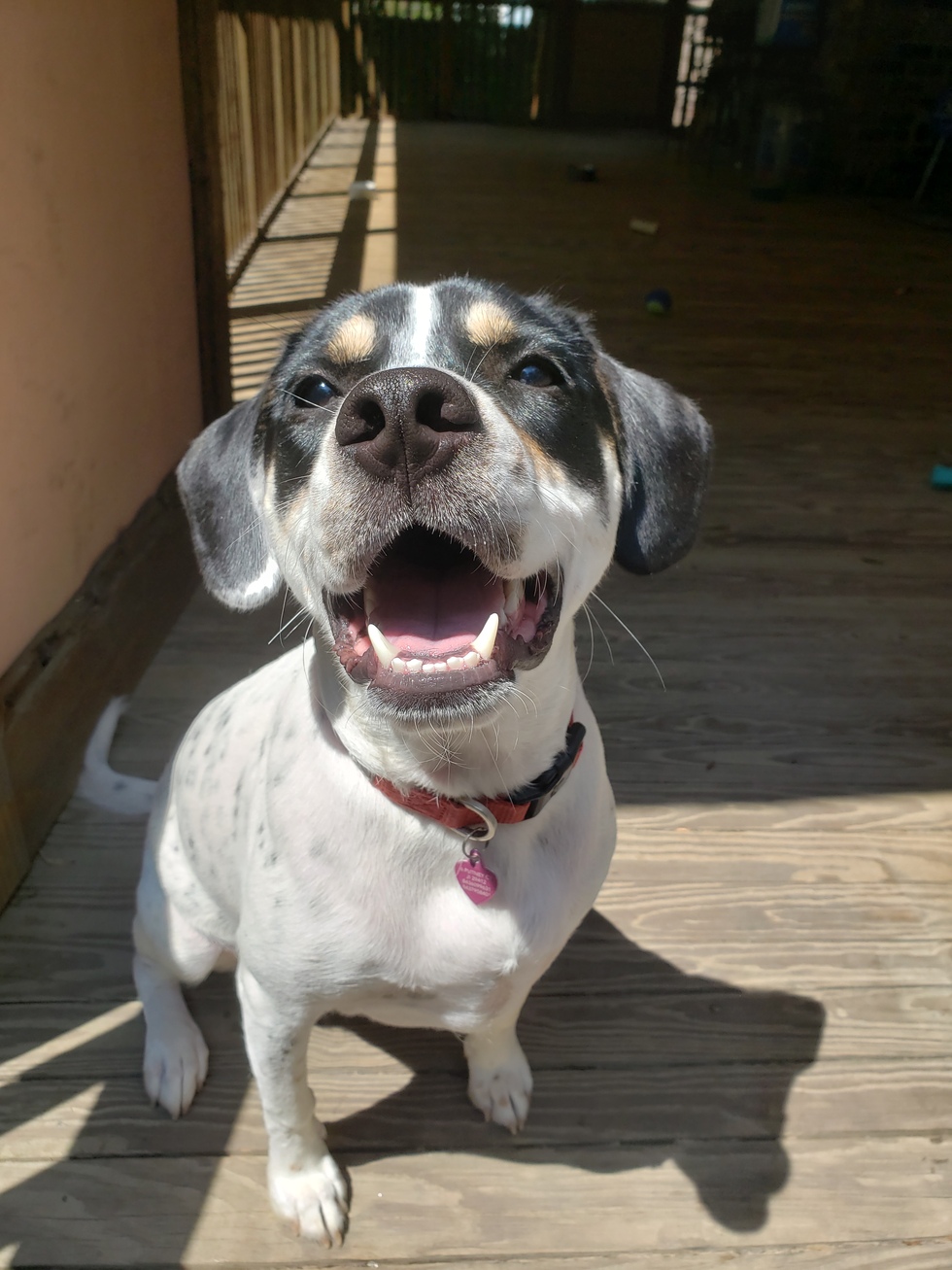 I am the best ambassador for the Palmetto Rescue Brew Beer because...I am a very loving and playful with people and animals. I got adopted from Charleston Animal Society last November and spent my very first Thanksgiving with my mom and her family. Before the adoption I was found on the side of the road with my siblings and mom by some sweet people who brought us to Charleston Animal Society. They did an amazing job with us and got us cleaned up. My mom is my best friend and we go everywhere together. What more could you ask for? One of my favorite things to do is to race my mom when we go out for runs. I always win, she is kind of slow. I am a hound mix and when you hear me bark you will definitely be able to tell because it will make you smile. I am the perfect example because I have shown that rescue dogs are way better than purebreds. I got rescued by the best family and I love to see other dogs get rescued too. P.S. it is like celebrating your birthday all year with my mom, I love her very much cause she gives me treats!
