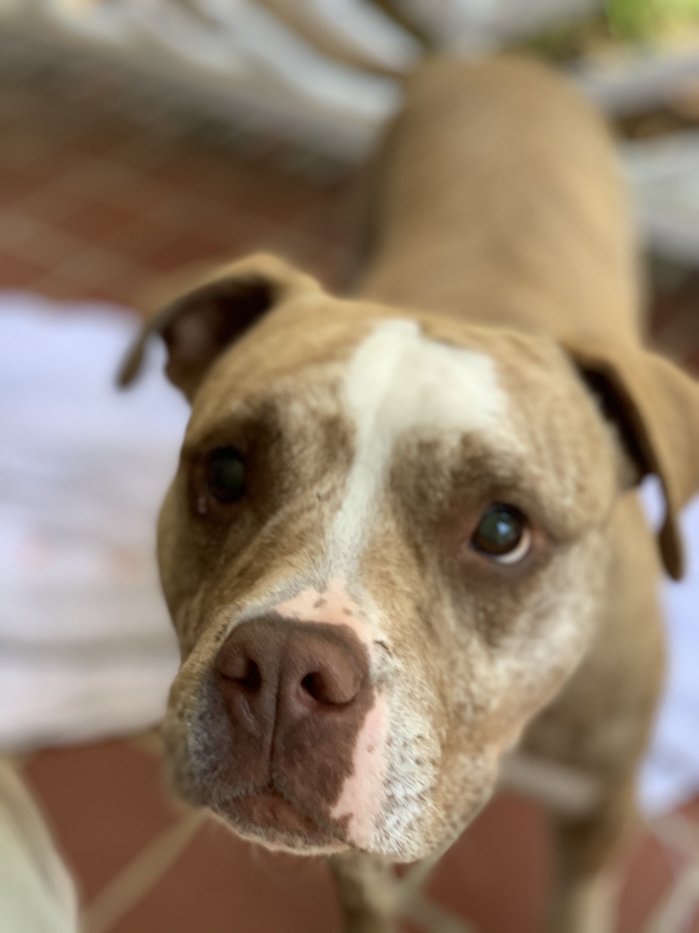 I am the best ambassador for the Palmetto Rescue Brew Beer because...I am a blind pup but that doesn’t hold me back one bit! Hence the name (Helen) Keller - get it?!? My pet parents adopted me from Eunoia rescue last fall. I had just been fixed and had really bad heartworms but I am now heartworm free! Oh and no more puppies for me- now I get to be a puppy myself! When the folks at Eunoia found me, I had just gone blind. They think I was hit in the head. But guess what? Being blind isn’t that bad. I just have to map things out and use my ears and nose more. I now spend my time going on walks, playing in the backyard and napping in the sun. I love meeting people- they just have to talk to me before they pet me so I know they are there. My parents call me fearless because I jump off the top step of the deck! It’s fun! My mom must love me a lot because she always smothering me with kisses! I think I’d be a great ambassador because I am proof that despite rough beginnings, rescue dogs always have lots of love to give!