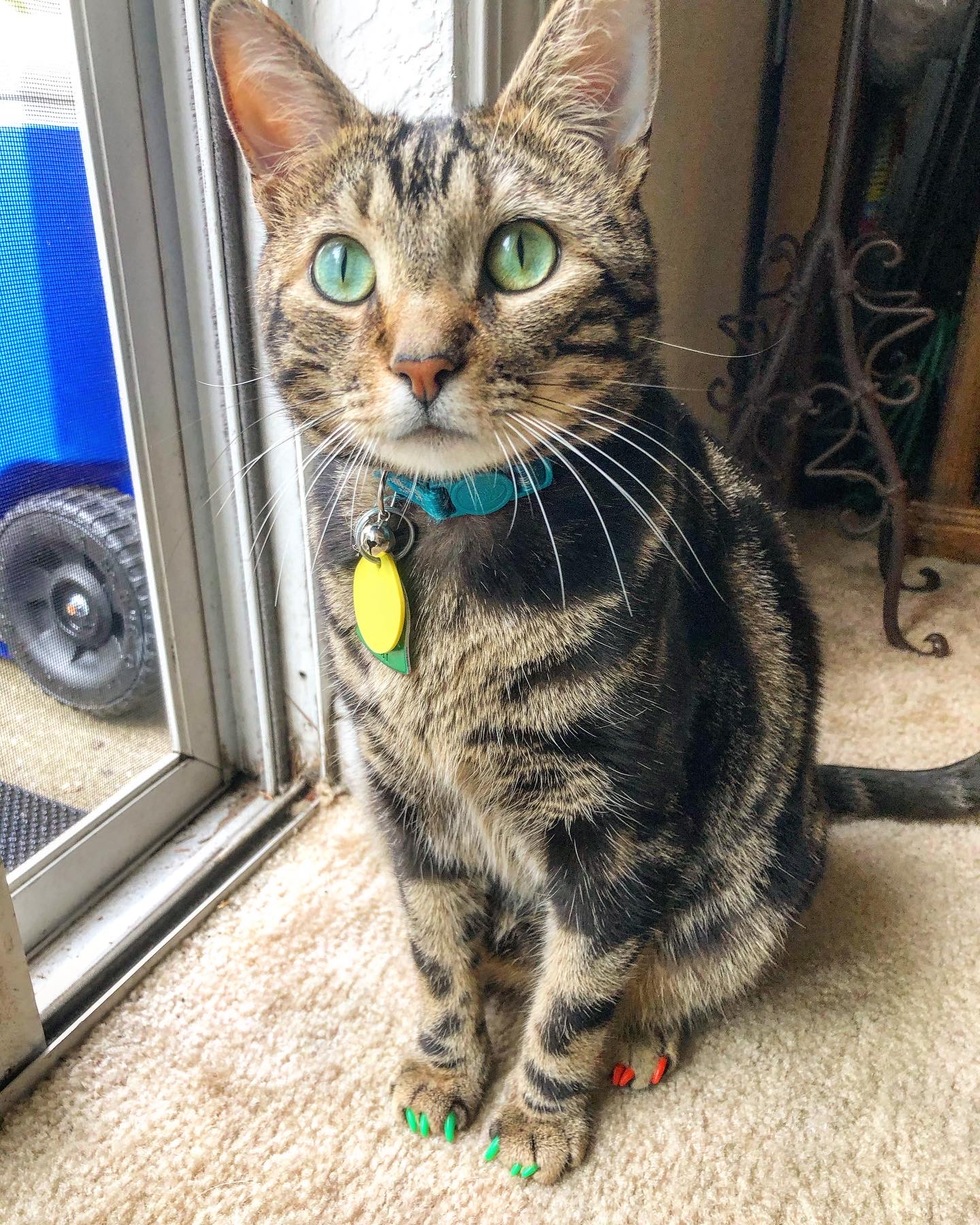 I now spend my days as a fat house cat. I love to chatter at birds and sleep all day. I am very chatty and talk to my mom and dad all the time.