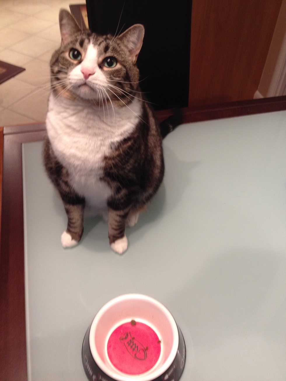 Tell us why your pet is the best ambassador for the Palmetto Rescue Brew Beer (from your pet's perspective)My family adopted me from Last Chance Rescue back in the DC area when I was a kitten, 14 years ago. My cuteness is my cross to bear because I get way too many kisses and nose boops for my taste. You can see what I deal with, since they took the time to take a picture during an empty food bowl crisis! I'd be the best Ambassador for Palmetto RescueBrew Beer because anyone would want to raise a can in a toast to my pink nose and toe beans! I think a can of this beer would look especially tasty standing alongside my treat jar.
