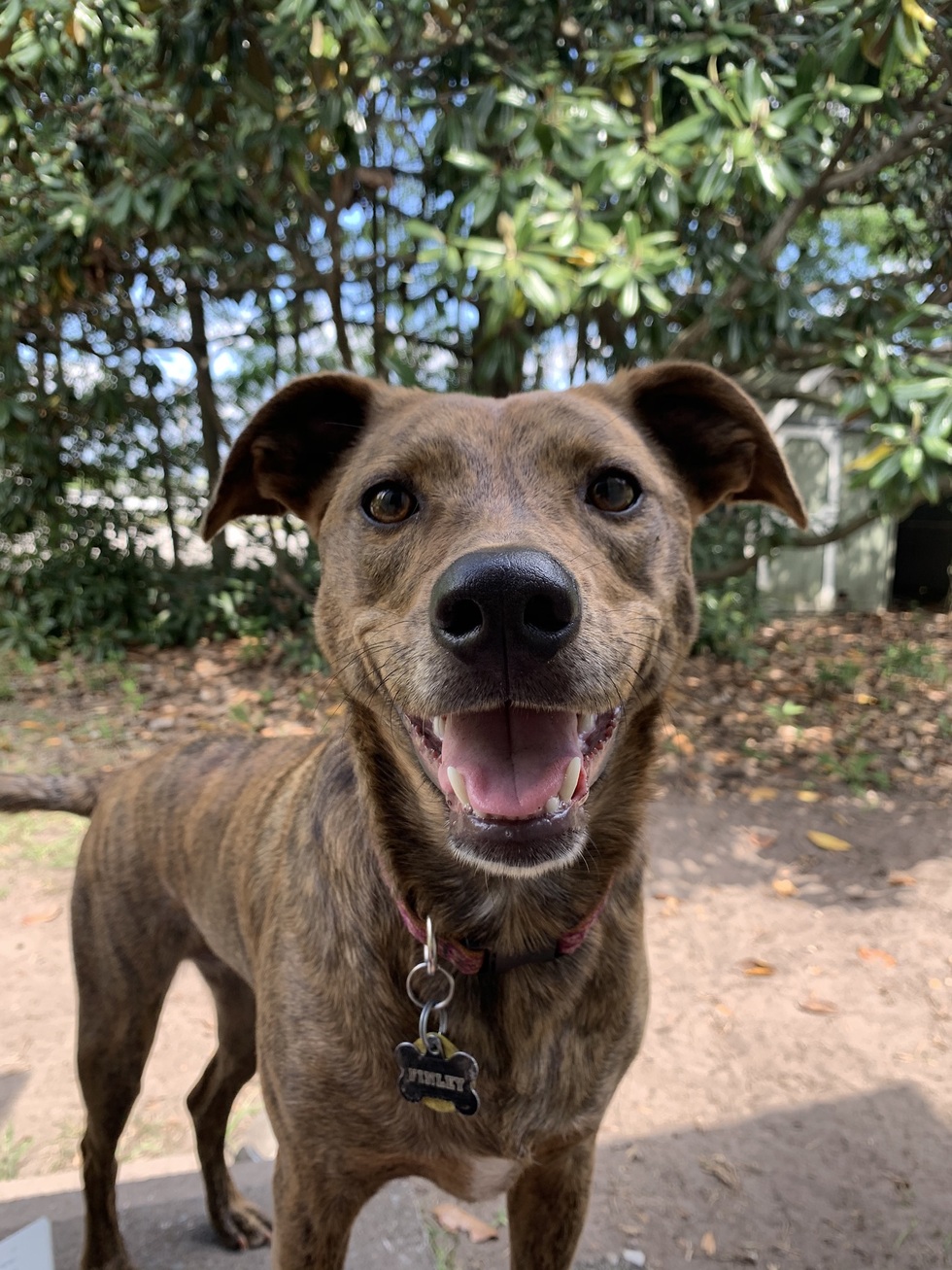 Tell us why your pet is the best ambassador for the Palmetto Rescue Brew Beer (from your pet's perspective)Oh hey! My names Finley! Finn for short(female by the way), I have several other nicknames mom created for me, but no idea what she’s saying really. BUT! What I can tell you is, I’m a happy pup! I was about to be put into a cage type of thing in this place FULL of other dogs, scared as can be. Luckily, my human mom spotted me before they scribbled stuff on a board with my info. We fell in love with each other and she took me home! I’m an energetic one, I run SO FAST! Mom tells me I’m like Ricky Bobby? But on my feet? Who knows what that means. I love little humans, they’re like my mom, but 947382 times smaller! Mom says I “can’t jump, because they are fragile”. So i have to contain myself and just sniff. I LOVE curling up in a spot that makes me feel safe, like my moms chest/neck. Best spot! Oh! And we love breweries! Mom has a collection of “growlers” from where she’s gone before/after getting me. I understand now after her rescuing me, she’s not actually “growling” at me. :) Yup, that’s me pretty much! It’s almost bedtime, but wanted to share with you how I was able to find my forever happy home through Charleston Animal Society! Woof woof! -Finley