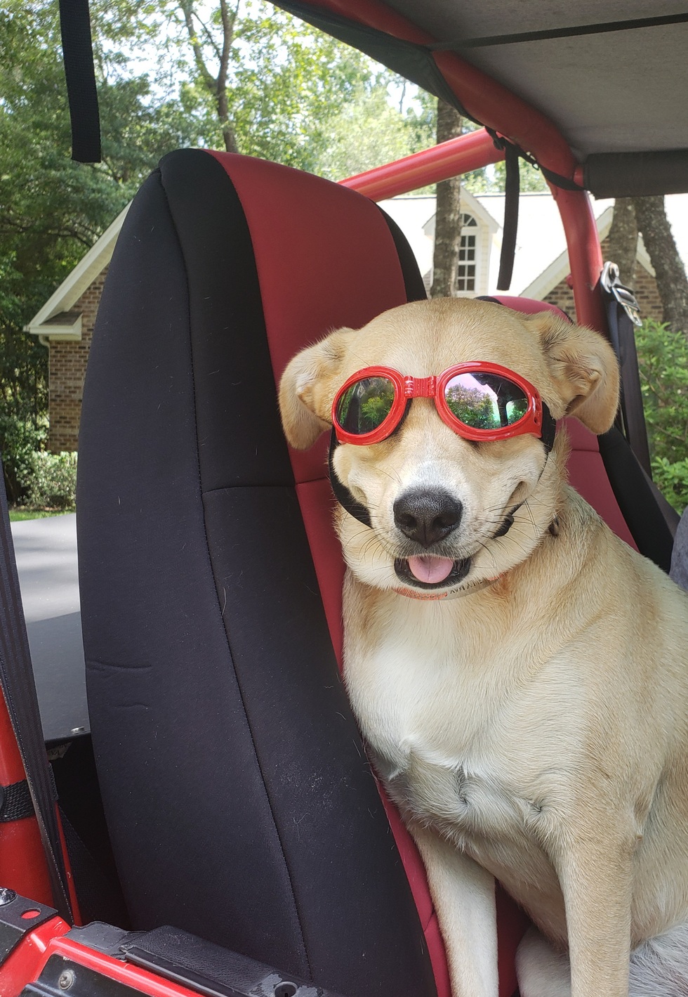 Tell us why your pet is the best ambassador for the Palmetto Rescue Brew Beer (from your pet's perspective)Hi! My name is Elly May. I was born in a shelter in Alabama, where my mommy dog was surrendered just before I was born. When I was a week old, my mommy dog and siblings were taken into foster care by a nice family. At eight weeks old, my new mom and dad adopted me through Operation Paws for Homes, and soon afterwards, we moved to Pawleys Island. My dad takes me to the beach every day in his Jeep, and on the way I wear my goggles to keep my eyes safe. I love seeing my old friends there and meeting new ones, too. Some of the humans bring treats for me, and I thank them with lots of kisses. Dad throws the ball into the ocean, and I love to jump the waves to get it. Sometimes, if I'm tired, I just wait for the ocean to bring the ball back to me. Most nights, my mom and dad take me for a ride on the golf cart, and I hang on tight and smile big when dad takes the corners a little fast. My mom always holds me tight! It's so much fun! They love me so much, and I love them! I think I'd be a great ambassador for Palmetto Rescue Brew Beer, because people have fun drinking beer, and I am all about fun!