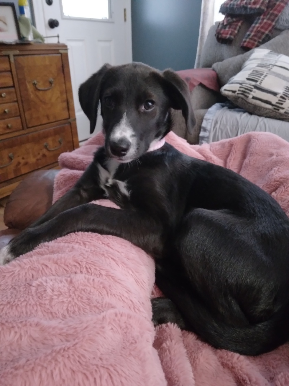 The minute I saw the cute little face of Millie Kay I knew she was the one. She is part hound and all legs. Very loving spoiled already, she has slept in our bed since day one.
