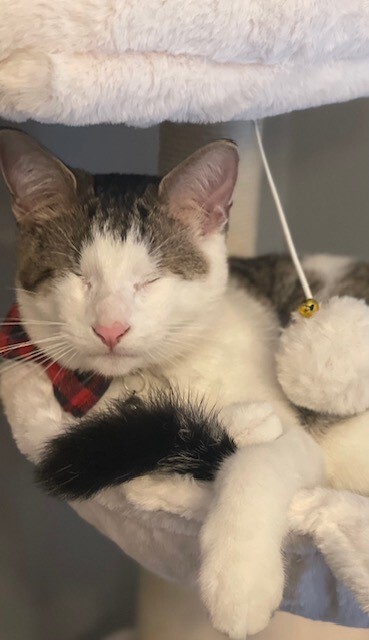 Tell us why your pet is the best ambassador for Commonhouse Aleworks Rescue Brew (from your pet's perspective)My name is Velcro. I am blind and have been since birth. I got my name Velcro because when I was little I was scared and would cling to anyone that picked me up. I have now adjusted to life being blind and I am smart. I have adapted to my new home and besides the occasional misjudgment of a wall or a corner, I do great! I think I would be the best SpokesCat for the Rescue Brew contest. I am a foster care success story. I am a daddy's boy and who better to represent beer?? My Dad and I lounge on the couch and "watch" TV. I am very attentive to my surroundings and can wrestle my brother all day long. I usually even win! I think I should be the SpokesCat because I am adorable and despite my disability, I am thriving! CAS saved my life and put me in the best foster home that became permanent. I now lounge in my hammock all day. That's what people do when they drink beer too so sounds like a perfect match!! Pick me!