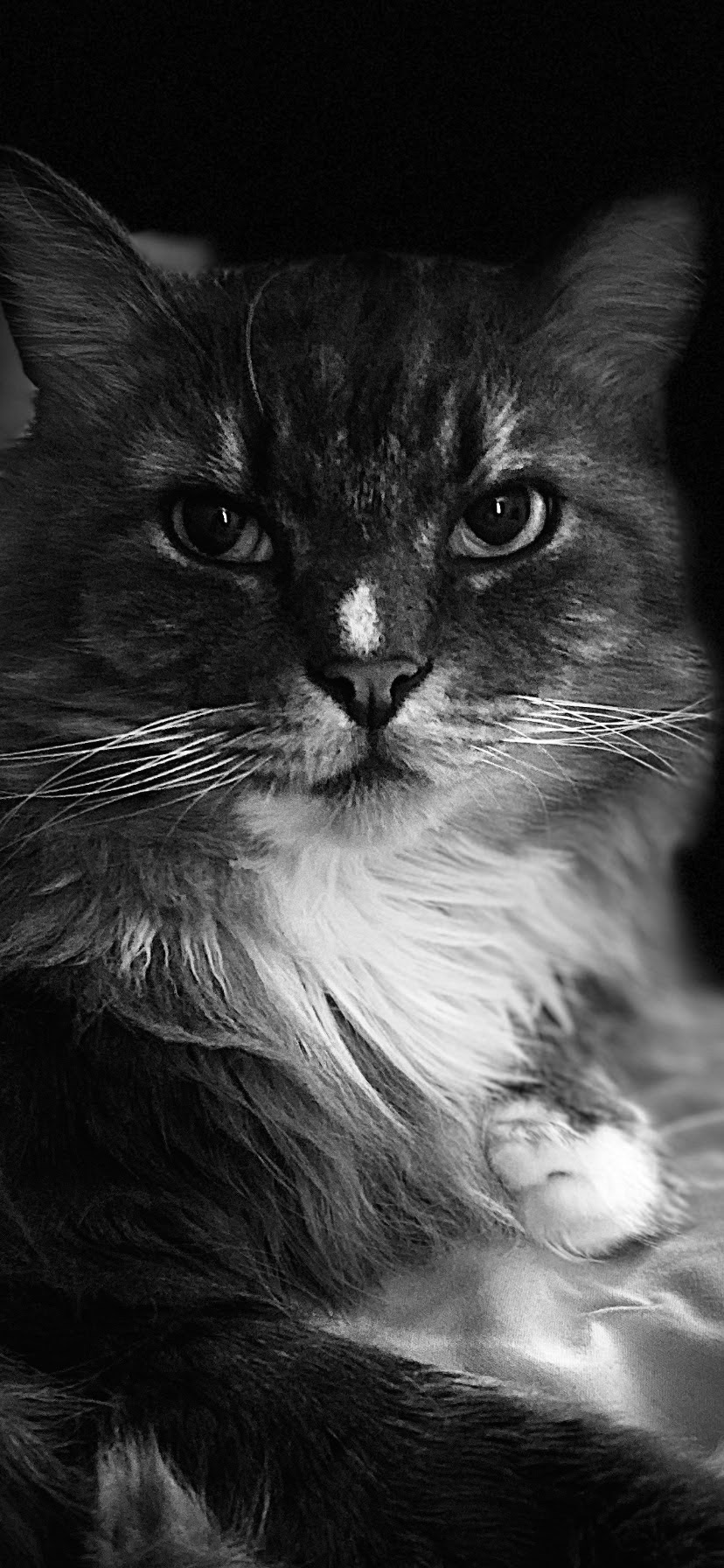 I spent my first year feral in Massachusetts. I was fed by my own hunting skills and the occasional neighbor, until one family took me in. After a few months, I was being evicted from my first and only home because of a nasty divorce. One day a family friend came over to help move furniture and I knew I could win her over. I turned on the charm and paw picked her myself. I followed her everywhere and even into the shower!