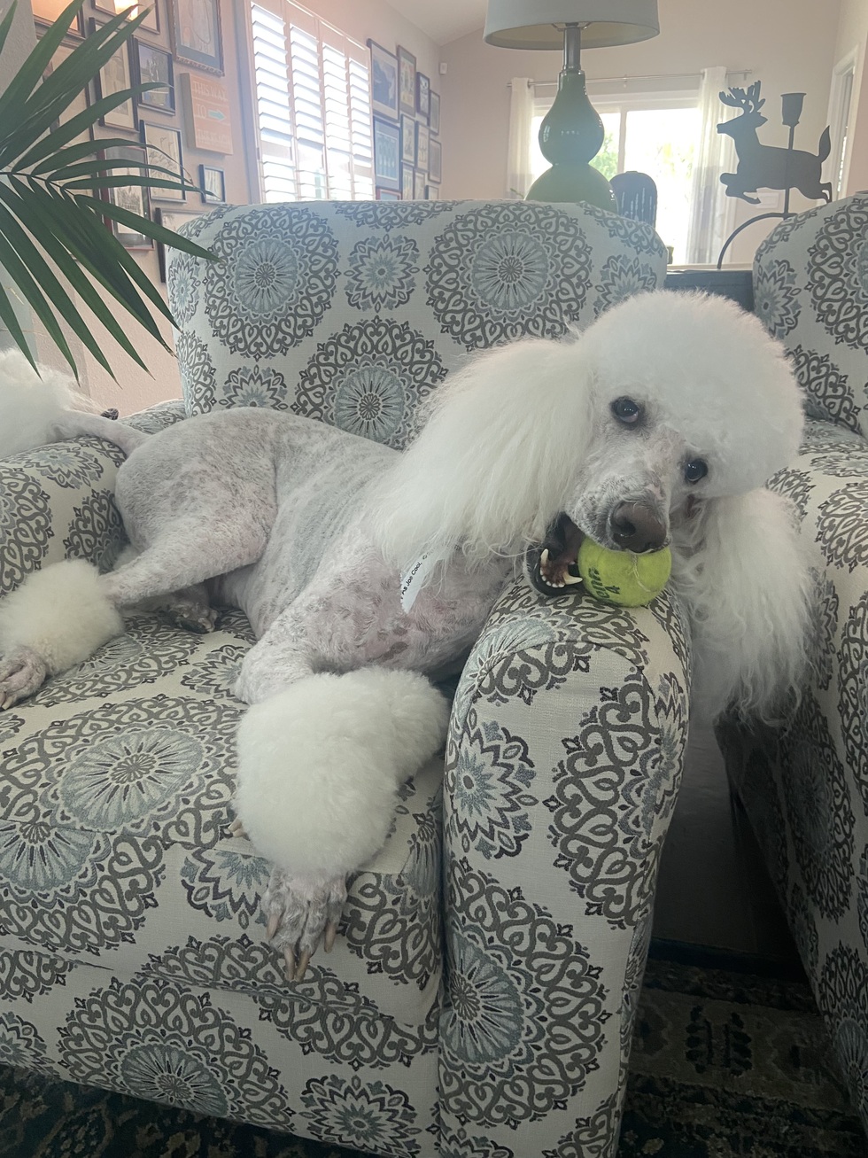 Tell us why your pet is the best ambassador for the Palmetto Rescue Brew Beer (from your pet's perspective)Hi There! My name is Napoleon and I represent all rescued pets and pawrents alike! I’ve had not one, not two, but three families before I found my forever home! I like long walks to Lowes, any and every car ride, bacon (despite my allergies), and watching football with my family! I’m a very sweet boy but I can be mischievous. My pawrents don’t really like it when I go counter surfing but I get away with it because of how cute I am! I’m not much of a beer drinker but I think I’d be mighty cute on this beer can. I’d represent standard poodles and doodle breeds alike with my cute curls on display! Here you can see I’m a rather big boy, so I take up a lot of space but you can find me belly side up, with my ball in my mouth and/or getting the zoomies while my retired pawrents try to slow me down!