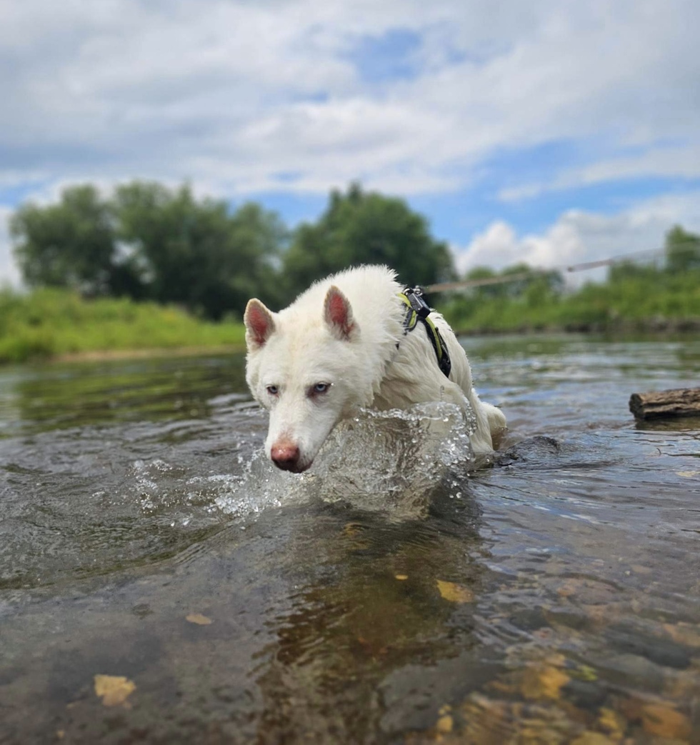 Tell us why your pet is the best ambassador for the Palmetto Rescue Brew Beer (from your pet's perspective)Elsa is just an amazing dog. We believe she may have been raised in a house with an elderly person and a mean cat. she is so gentle and snuggled up to elderly folks. Also she loves to tease the neighborhood cats. Elsa is also very photogenic. With her pink ears and nose with blue eyes she is definitely the snow princess.