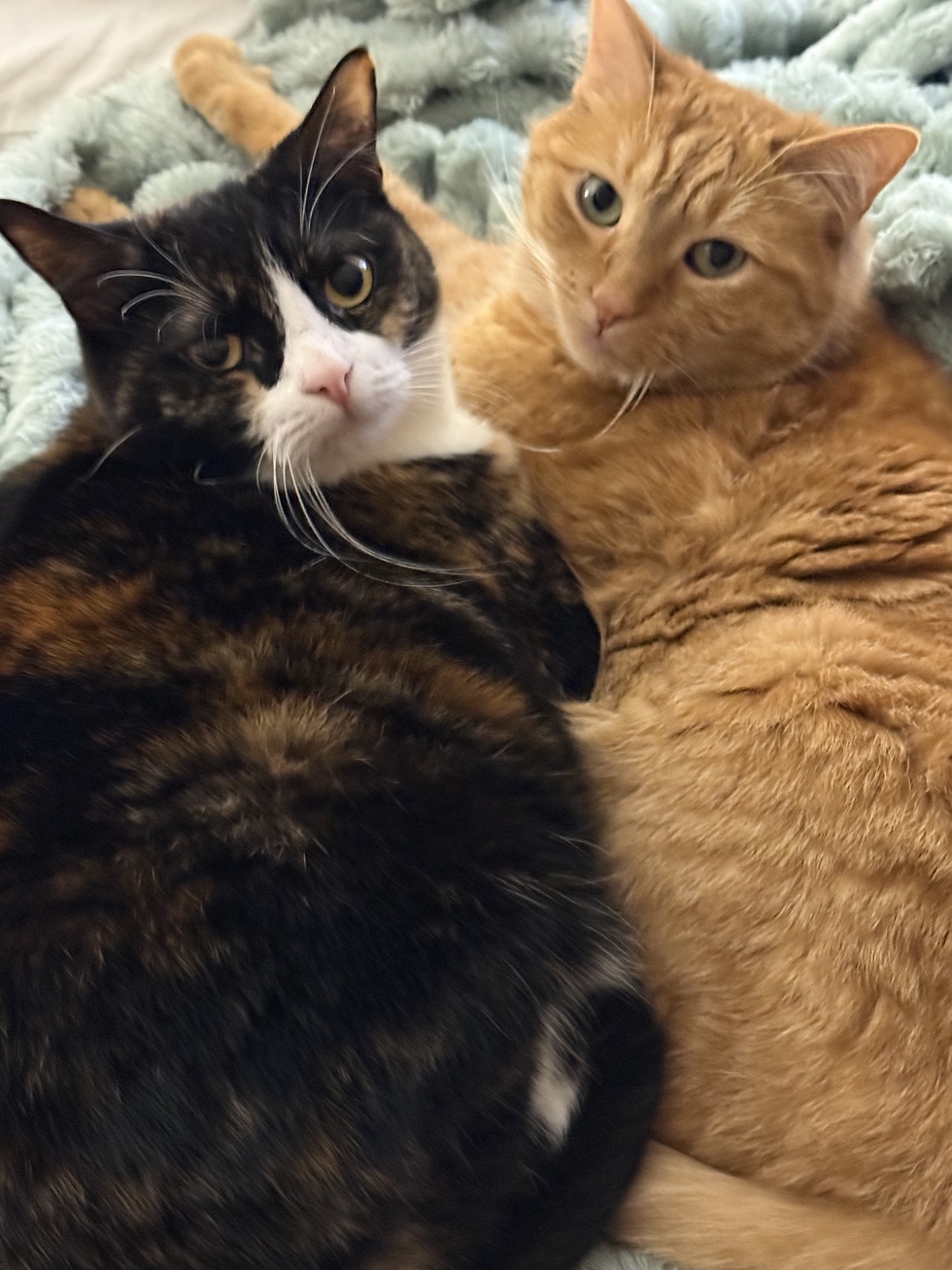 I’ve had these girls for 5 years, they are my world as a single guy in his 50’s. Madge is FIV positive and spent some extended time in foster as people are afraid of what they don’t know. Gaga is not FIV. These girls are best friends and as indoor cats Madge is as healthy as any cat. She is also my shadow, always an arms length away, sleeps on my desk while I work, watches tv with me, and loves her belly rubs. To those that passed her up, you missed out! She keeps me sane and in times of sadness purrs me back to reality! She is also usually in the window looking for me when I return from an in office day or shopping trip. Madge is the Calico and Gaga is the mischievous orange cat! They complete me.