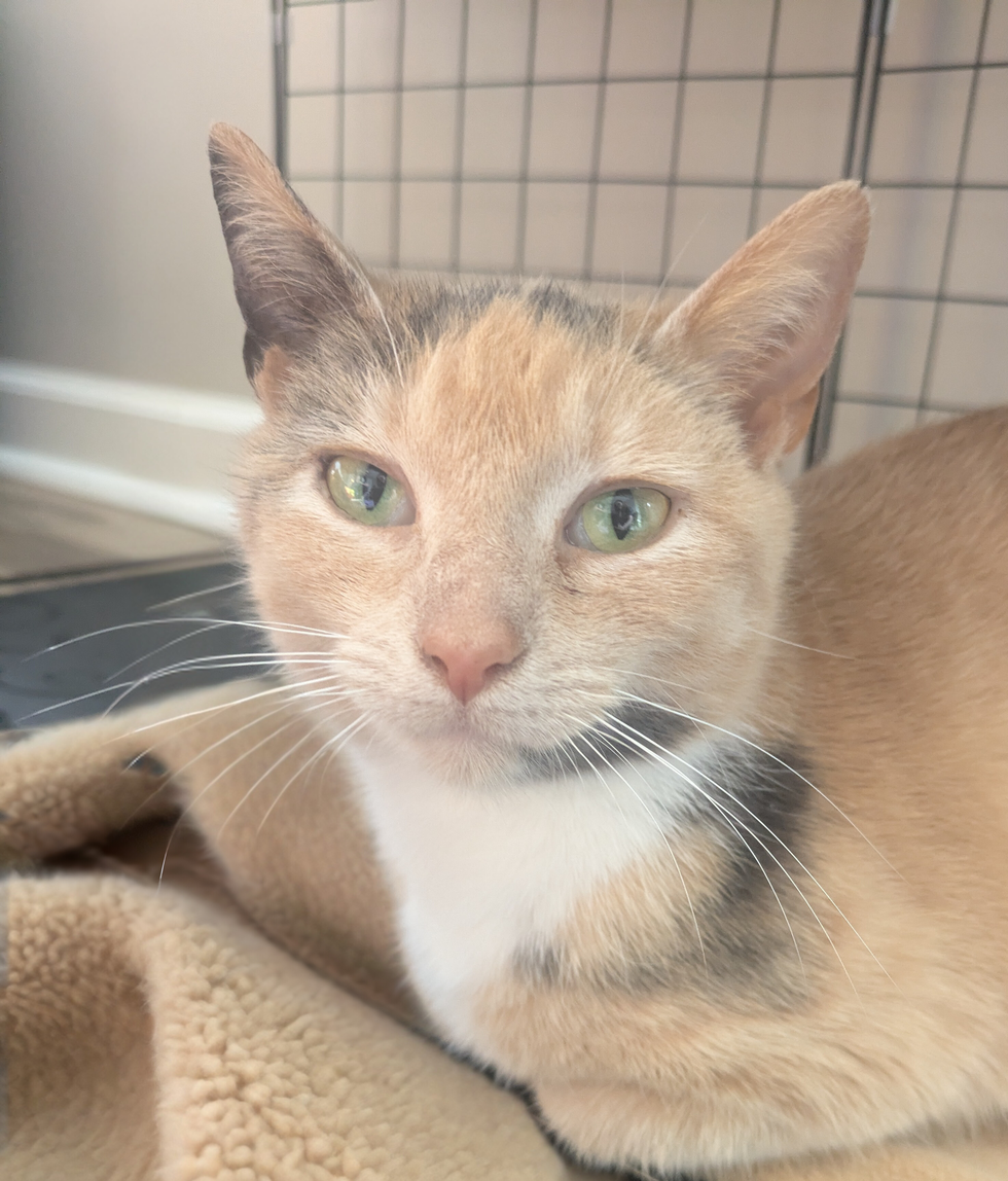 Puddles found us in February. She came to our back patio and made herself at home in the shelter we had set up for the strays in our neighborhood. She braved the snow and bitter cold and scared away the larger males competing for food. We called her Puddles because her dark patches made her look like she had been splashing around in a mud puddle. In February, we took her in, and she officially became part of our family. She no longer needs to feel cold or fight for food, and she even has her own bedroom now. Puddles is the most lovable girl. She snuggles us each night as if to say, "I'm lucky to have found you." But really, we're the lucky ones.