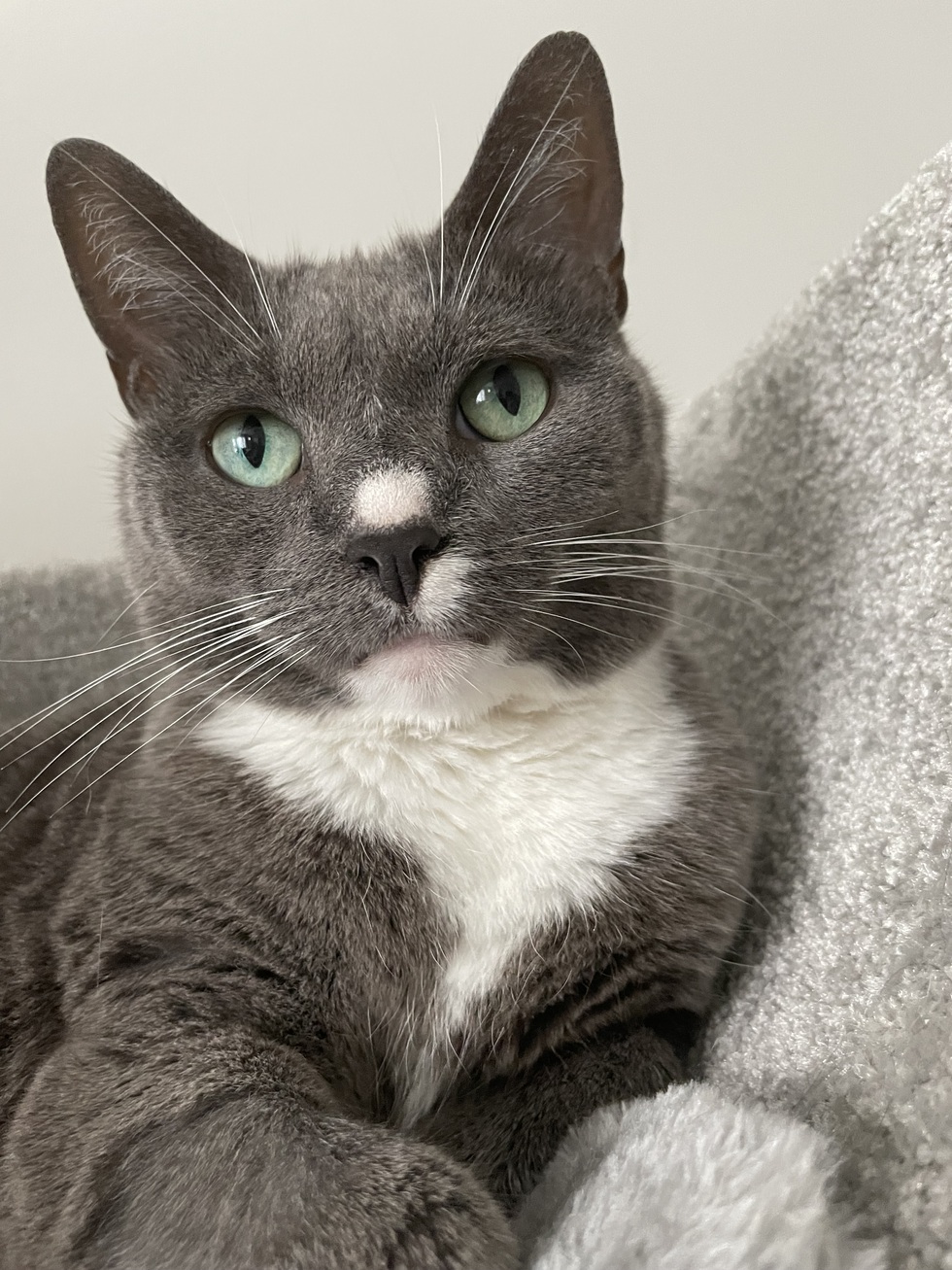 She is the sassiest people loving cat! She is a mischief maker and has a very kitten like disposition. She often reminds people of a toddler in their terrible twos!