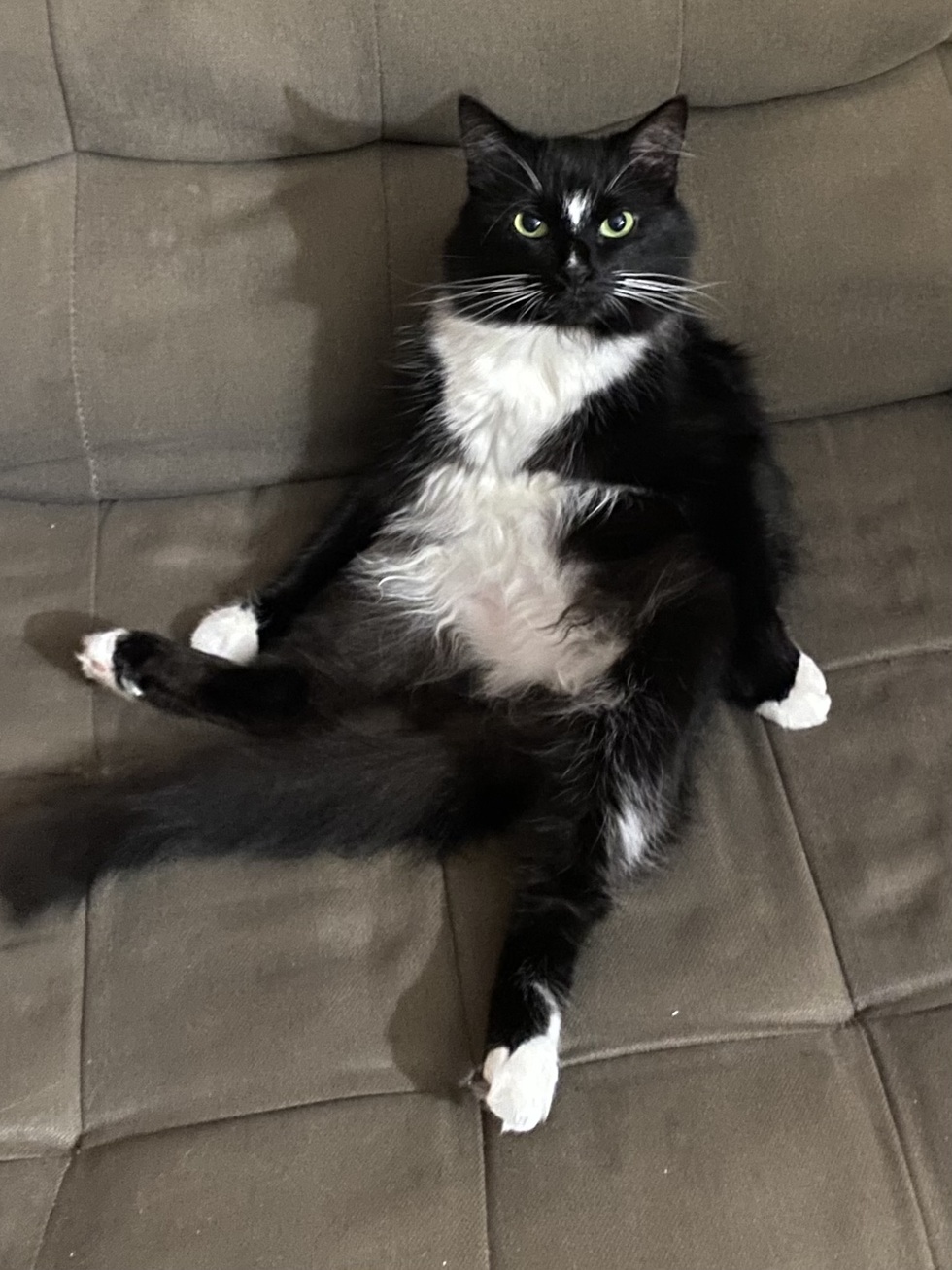 He’s a superhero because his mom got hit by a car when he was 2 weeks old. Him and his 3 siblings were bottle fed by me. And he’s grown up to be the sweetest and most loving cat that I’ve ever met. He’s never bit or scratched anyone even while playing. Little ones can carry him around like a stuffed animal and he loves it. He’s like a little tiny furry human filled with love for everyone he meets.