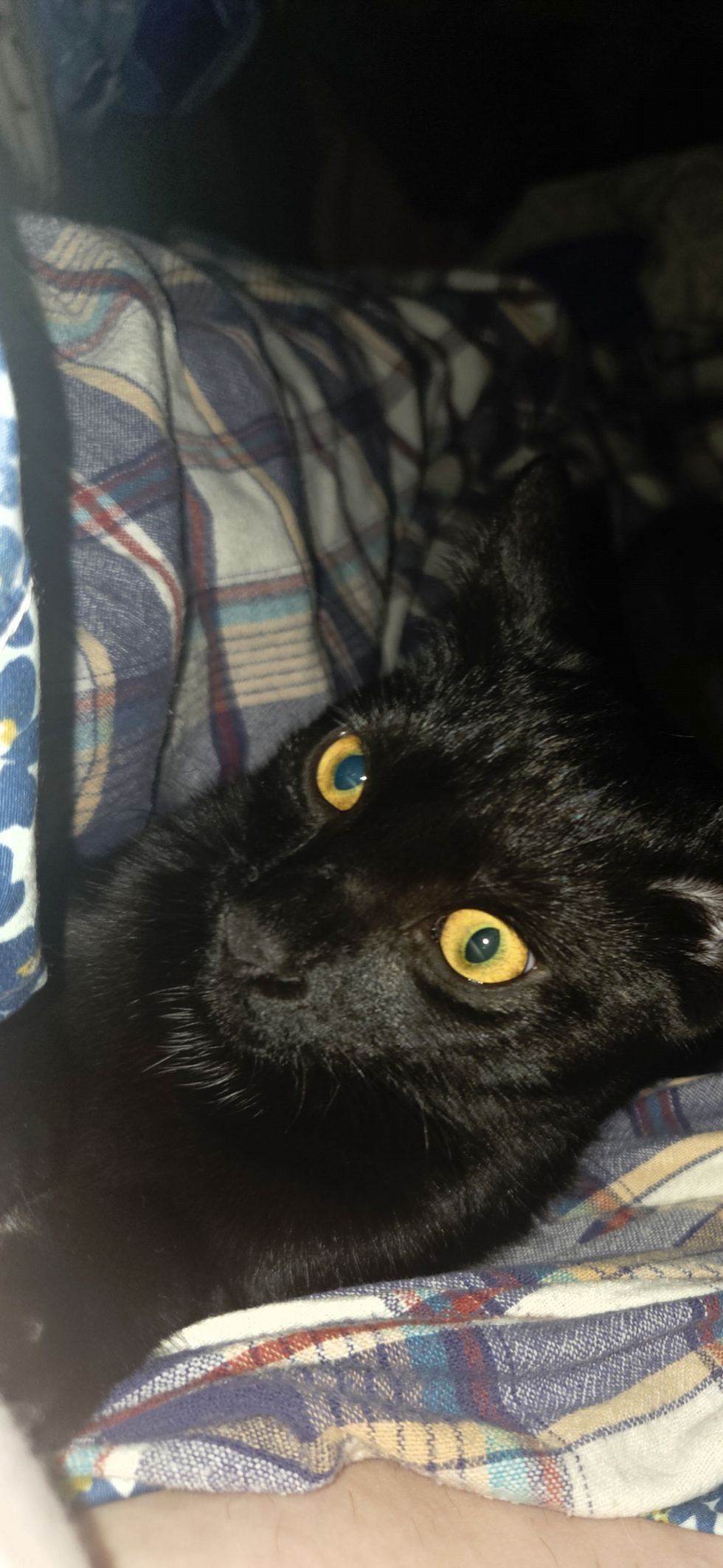 He was found at a couple weeks old outside in an old trash can. So I brought him in and bottle fed him until he could eat on his own. He likes to snuggle but he also likes to run run run.