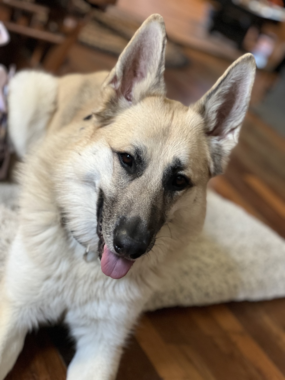 This is Ingrid, German Shepherd. She has an incredible amount of energy for a three-year-old.! She’s obsessed with fetch (she’ll play fetch with anything that she can pick up in her mouth and bring back to you). She’s very smart., very well trained! Very gentle nature.