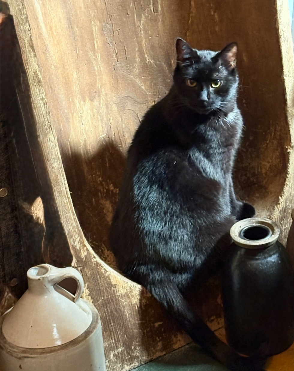 Houdini was born a feral kitten when I lived on a farm he was born in 2015. He got sick a few years later and when I took him to the vet, they didn’t expect him to live. He had contracted a terrible bacterial infection in his urinary track, but the vet was surprised because he said the blood work was that of a dead cat and he was alive. He was shocked. I set up all night and syringe fed him and gave him water and held him all night Houdini is a big boy and he’s so lovable and I still have his mommy and his brother. He is truly unique and he lives up to his name after the great Houdini. I captured this photo as he sat inside my giant antique bowl with the sunlight coming in the back door looking at me in my kitchen. He is absolutely and the vet still says he’s lucky to be alive