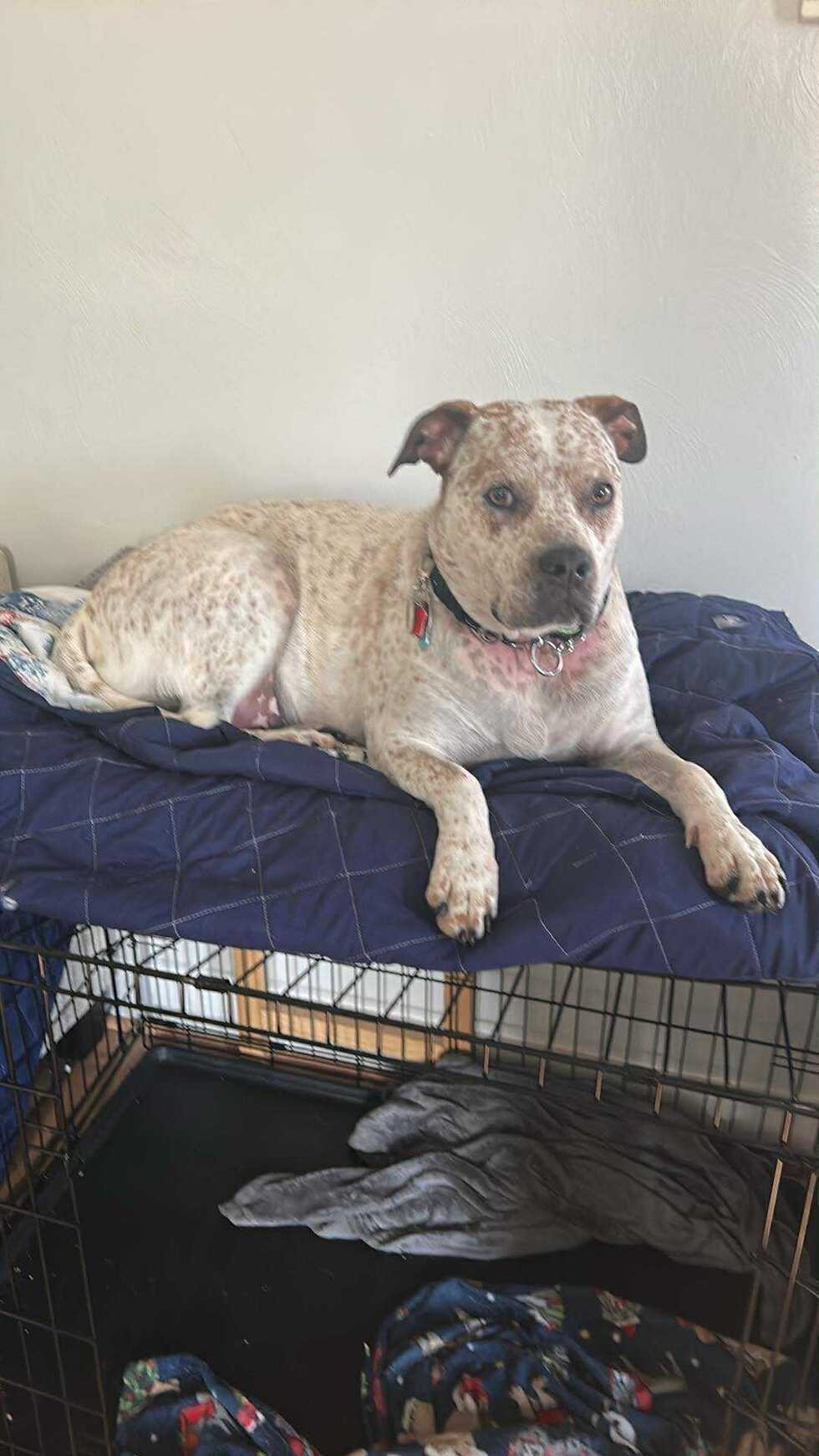 Waffles was a rescue from Huron County Humane Society. We rescued him at four months as he was a shelter dog since soon after birth. He is a tank! Lovable and chunky. He’s a Pitt Bull and Heeler mix, definitely loves food and attention.