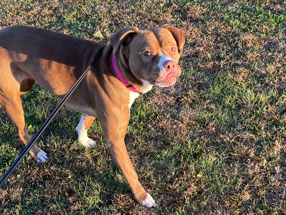 She loves going on walks and car rides. Honestly, she is just happy to be wherever we are.