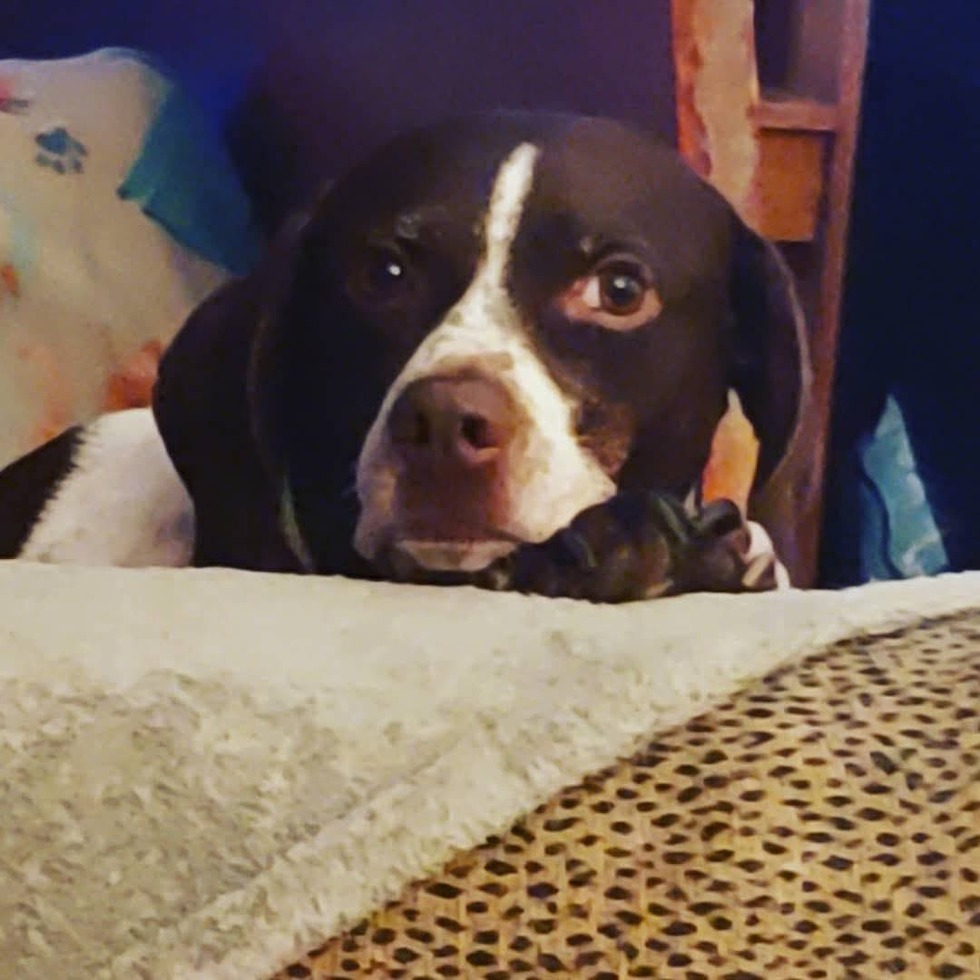 My husband saw a ad on Craigslist 11 years ago that someone was looking to rehome a pointer. He was looking for a hunting dog so we went to get her only to realize she is gun shy and hates storms/loud noises. Once I saw her I couldn't say no, so we brought Ella home. Now she enjoys long naps with her 2 cat-siblings and tricking dad to give her more treats.