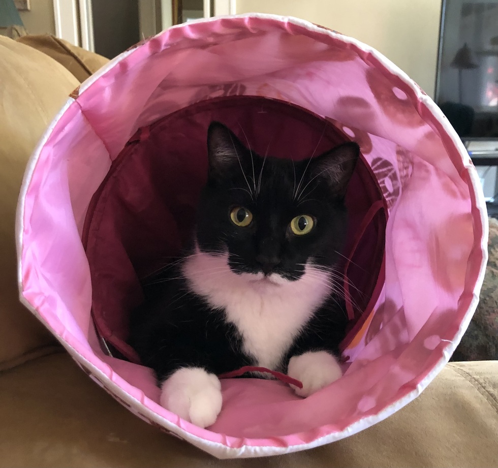 Nina was a small kitten found underneath a friend‘s porch over in the West Central neighborhood. She was hungry and eating rocks. I found her a home but the lady who wanted her planned to keep her in a pet carrier for many hours during the night. When she told me that, I started crying and decided to keep her. She’s been the best cat I could imagine.
