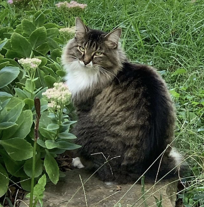 Tuna was rescued as a tiny kitten out of a very busy Springfield intersection. Her sibling was hit by a car 😞. Tuna is now a famous “Rountree cat” and makes her rounds daily, visiting several houses and outdoor patios. She is loved by many!