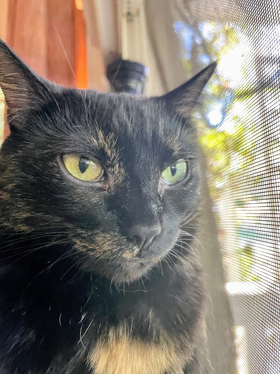 Mina popped out from under my car before work. I gave her some scratches and told her to have a good day. She took it literally. She stayed on the porch until the family saw her. When they opened the door, she walked in like she owned the place.
