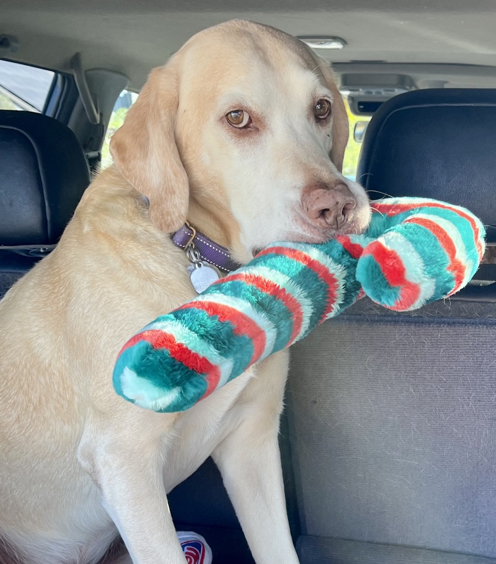 This is Gus. He started out as a breeding dog and after his work was done, Gus went to Rover’s Retreat. Three years ago we met Gus and it was love at first sight. He is 100% Lab and spends his days playing ball, eating and getting lots of love.