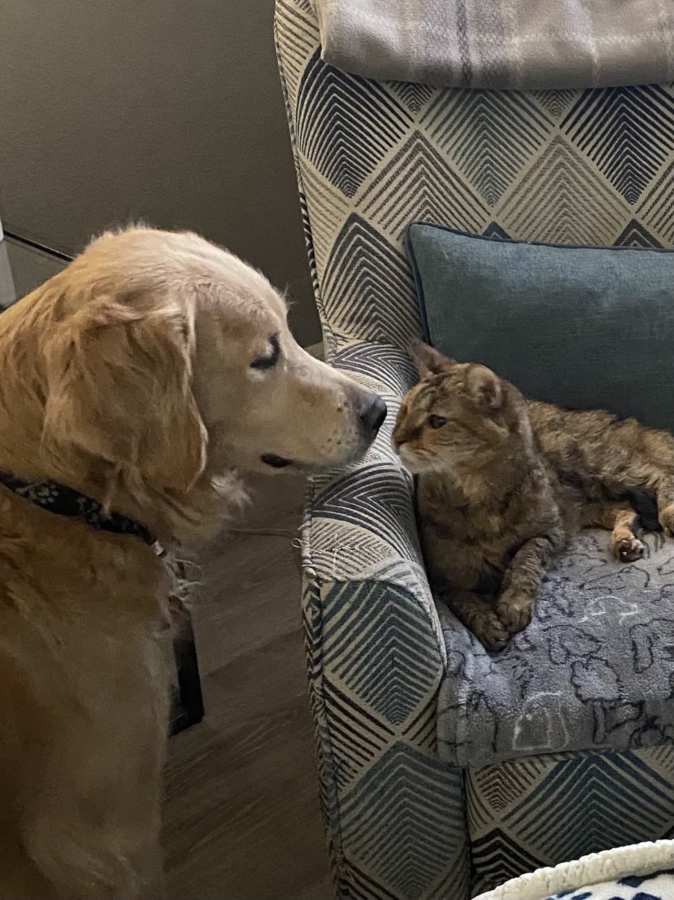 I was rescued from a dog meat farm in South Korea. I have been with my family for three years. I’m loving life and even got to meet my first kitty. I think I want one.