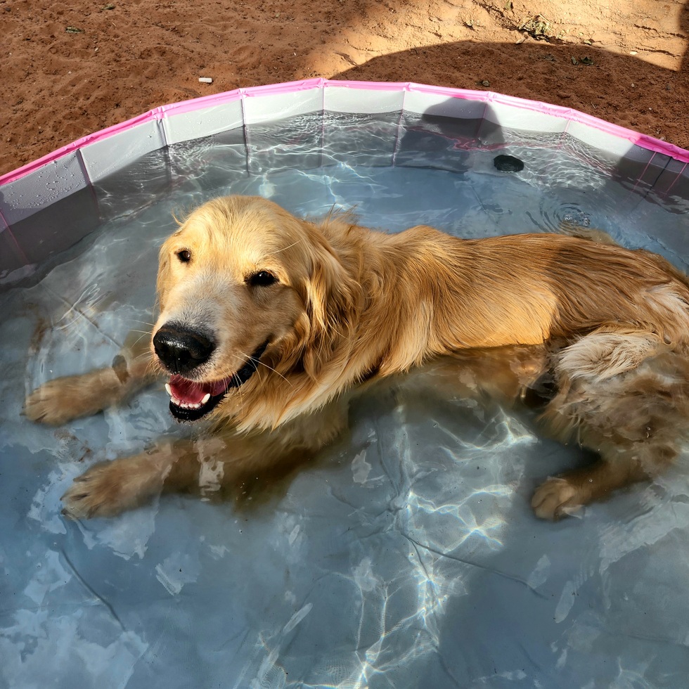 A Good Samaritan rescued Lyric from a meat market in South Korea. Since he was "only" chained, he is the 2nd largest Golden rescued.