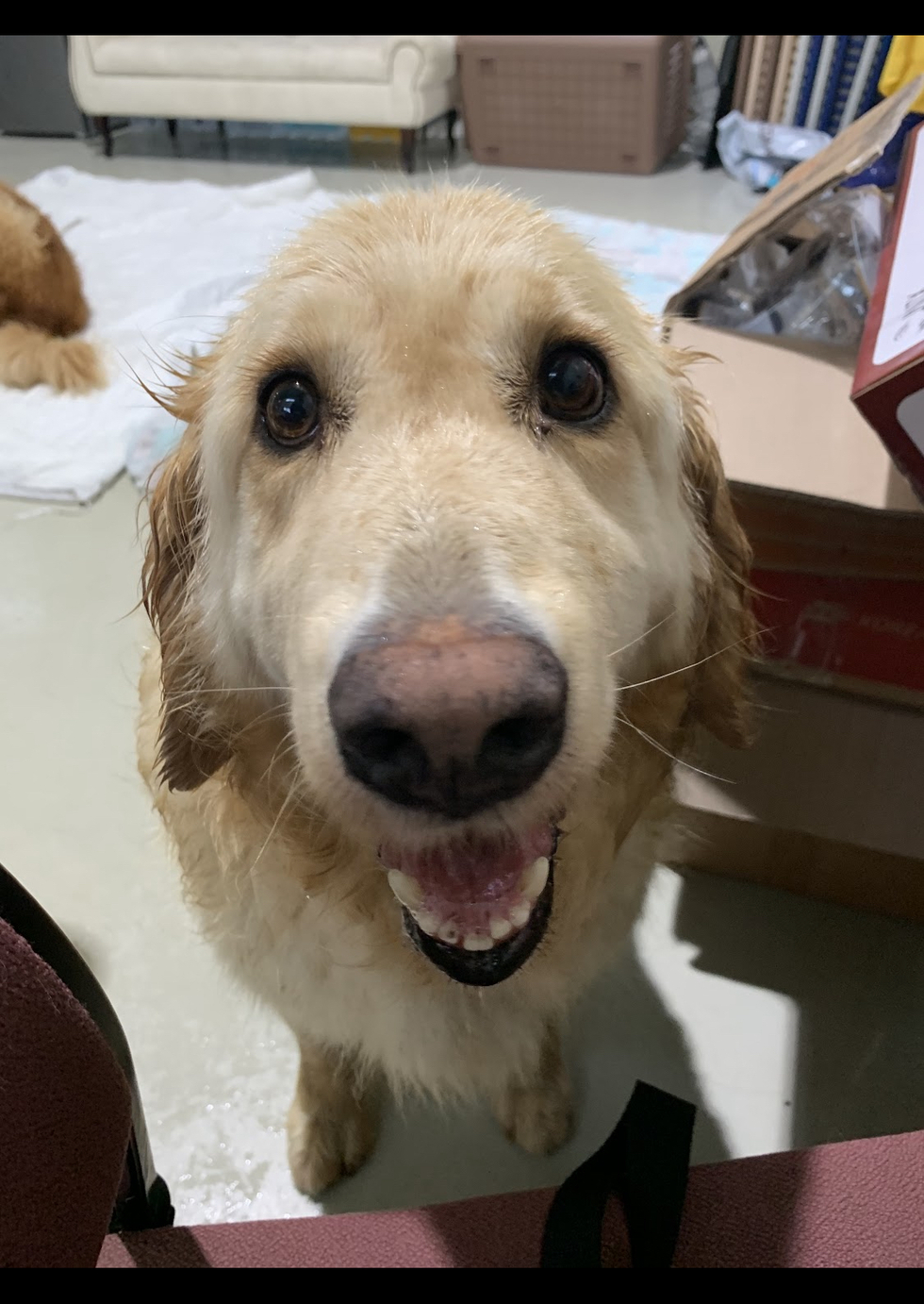 Sunny was found in a storage unit on a very short chain. Those eyes stole our hearts! He now lives on a small farm. He plays with his retriever brother nonstop. He has melted into our family beautifully. He is finally home!!!