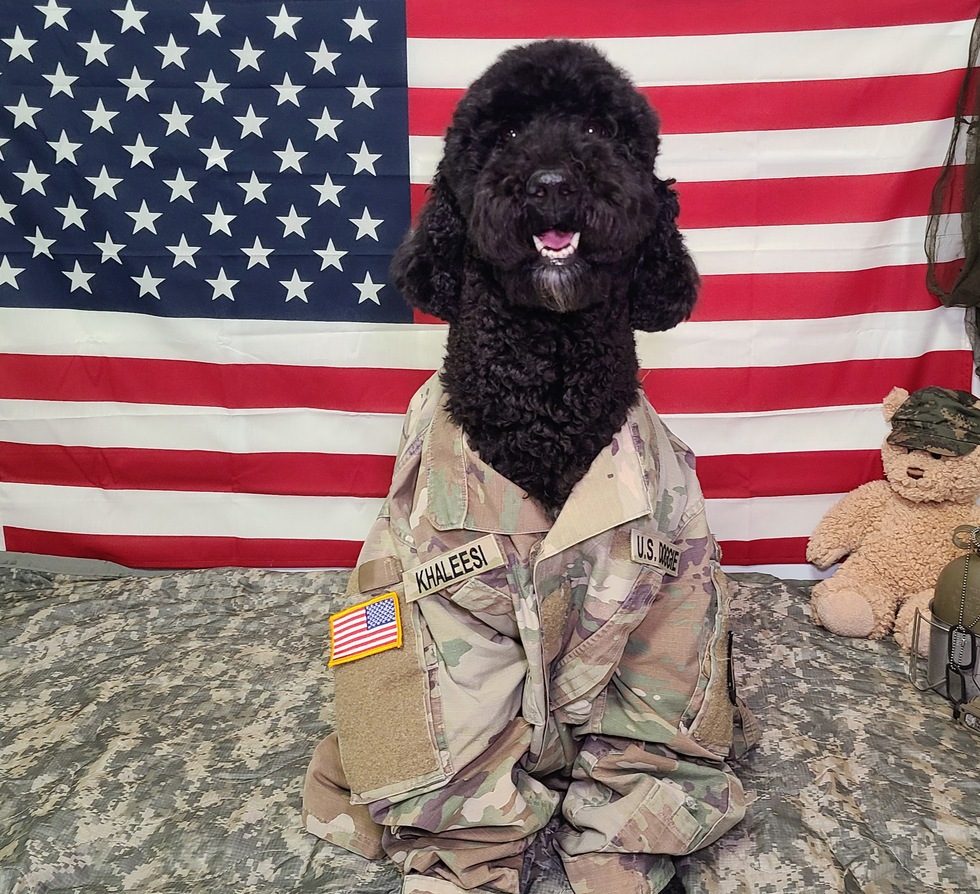 Khaleesi is a 2 year old Poodle. She is very intelligent and loves a good challenge. Some of her hobbies include bird watching, cuddling, and playing hide and seek. She used to be shy but through training and patience is now a social butterfly!