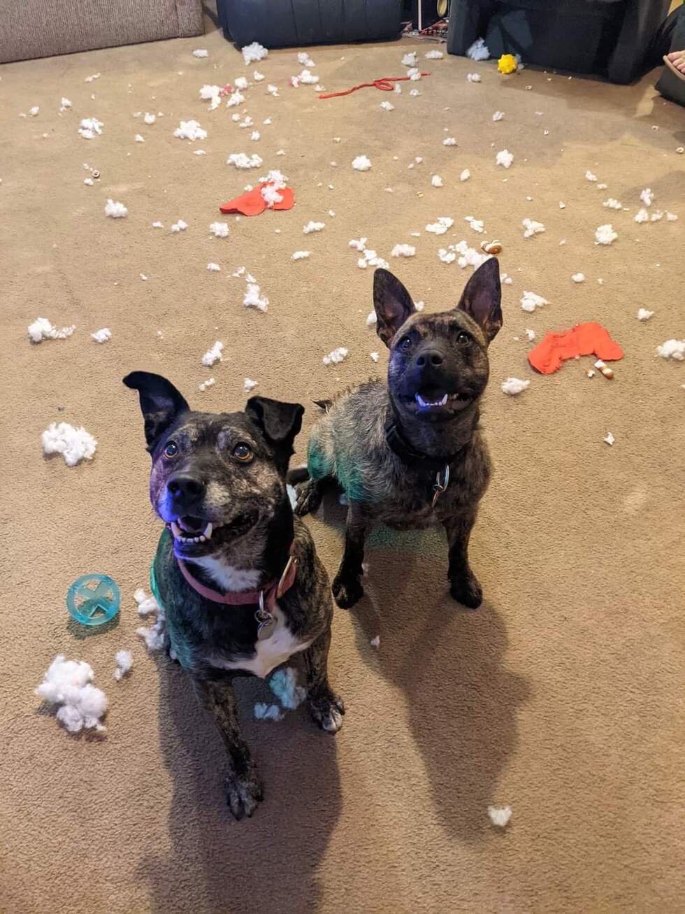 Pet's Quirks2 Happy, Cheeky, Clever rescue dogs who love each other dearly! Love to shred toys and ask "who me?"